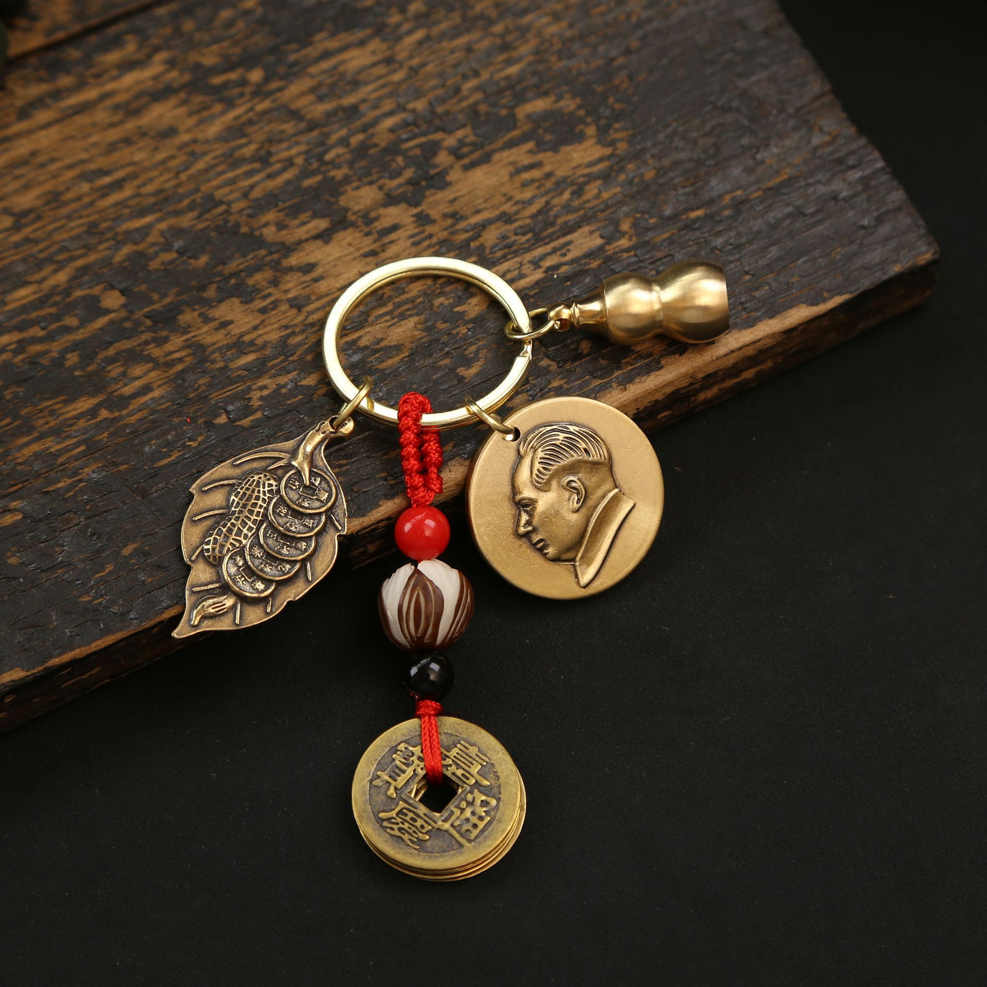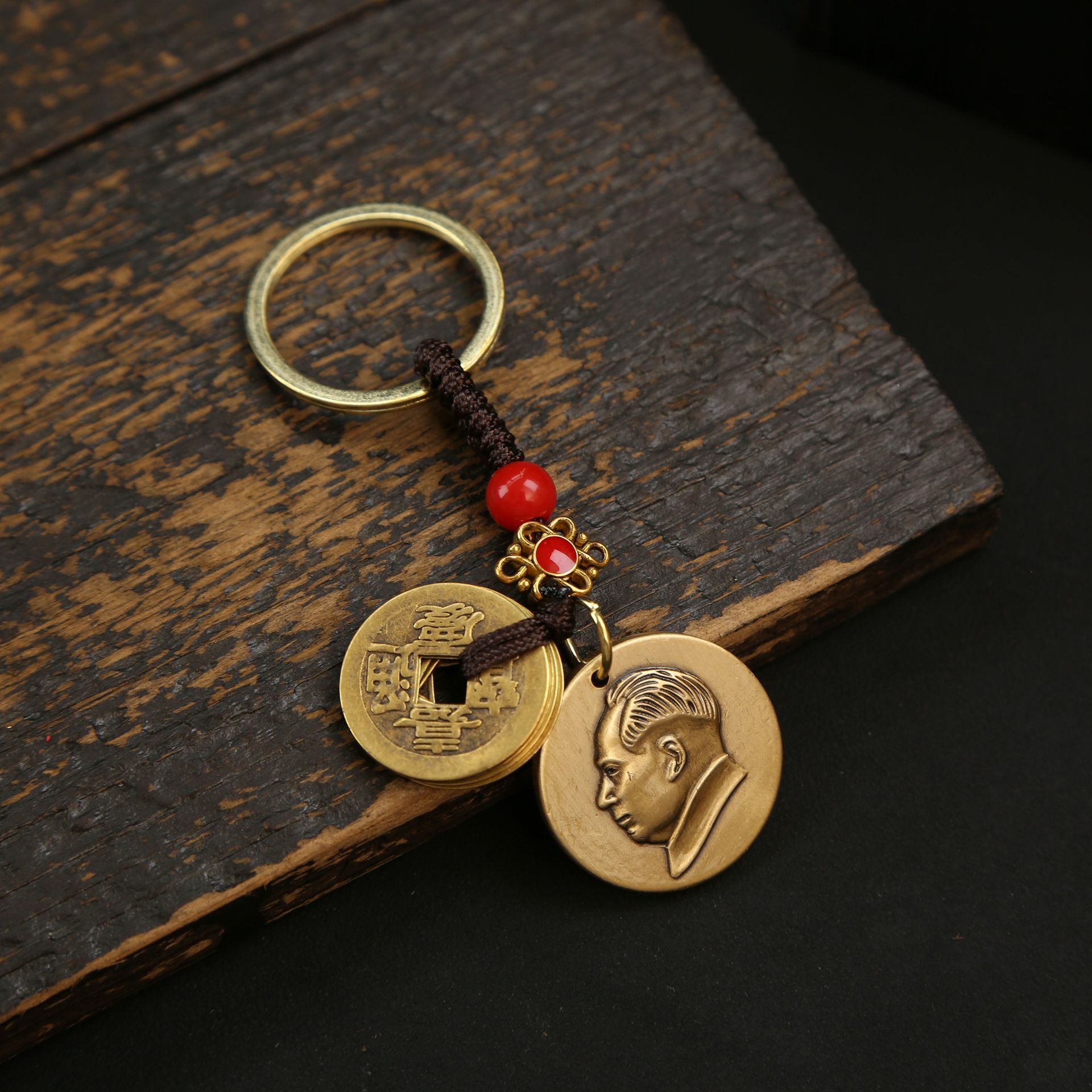 황동 회장의 카드 헤드 배지 자동차 키 체인 펜던트 애국 포춘 브랜드 남성 및 여성 가방 펜던트 공예 장식스토어 가기