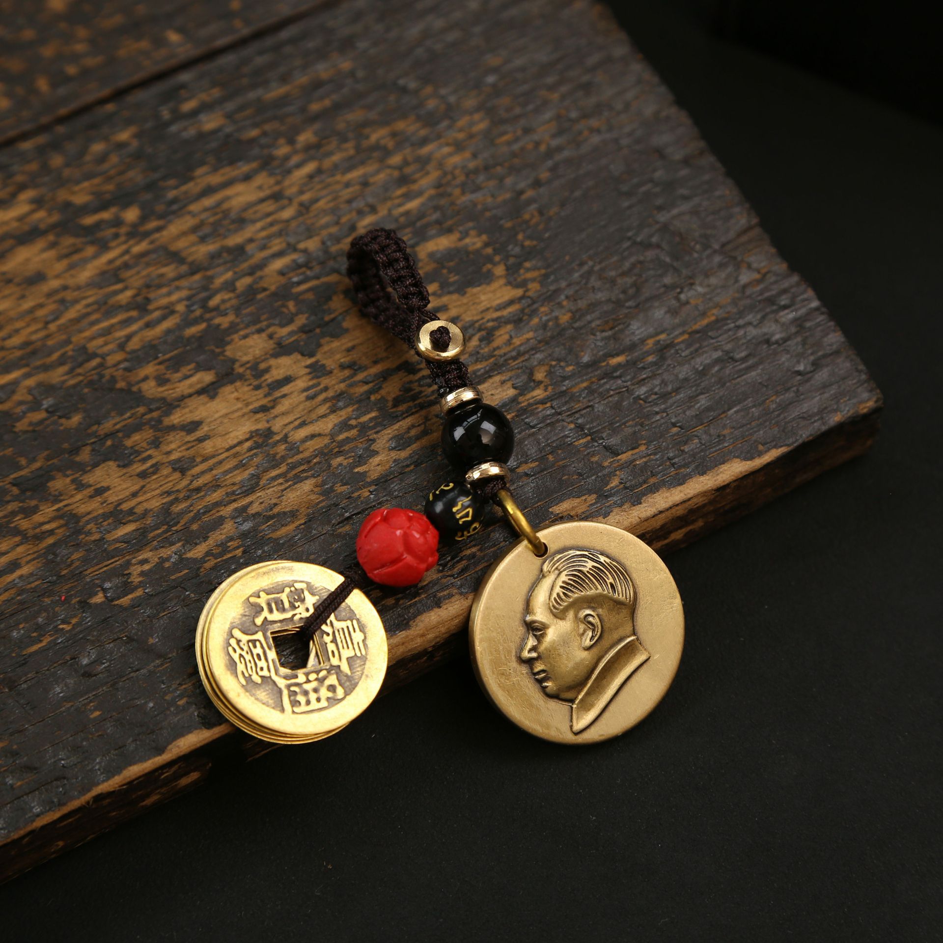 황동 회장의 카드 헤드 배지 자동차 키 체인 펜던트 애국 포춘 브랜드 남성 및 여성 가방 펜던트 공예 장식