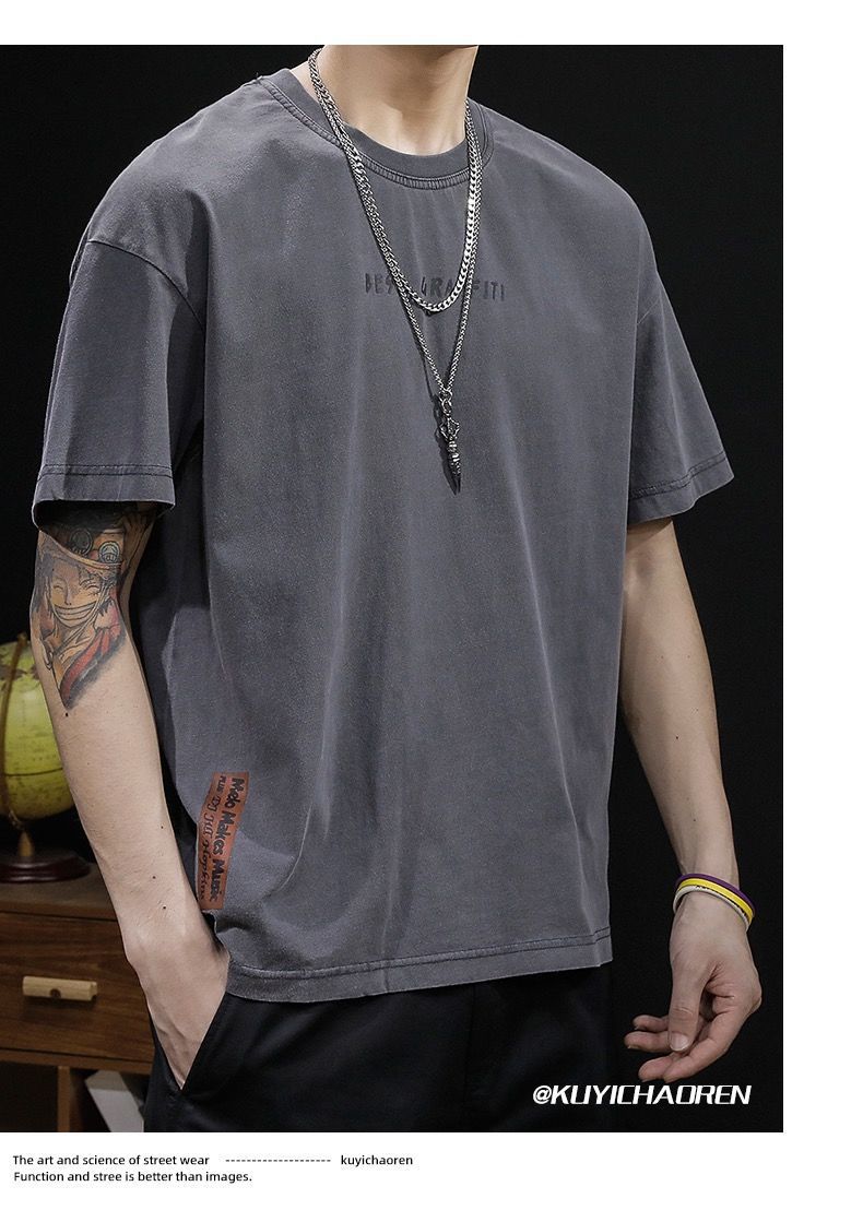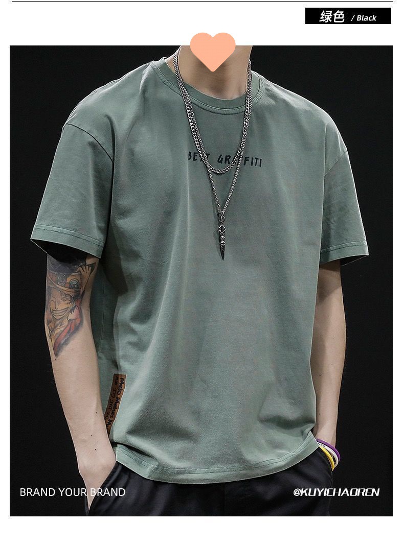 순수 코튼 아메리칸 스타일 레트로 반팔 셔츠 남성 여름 느슨한 유행 브랜드 크루 넥 유행 인쇄 반팔 티셔츠스토어 가기