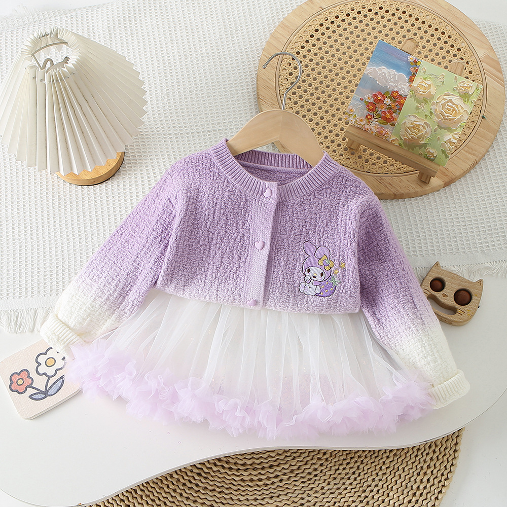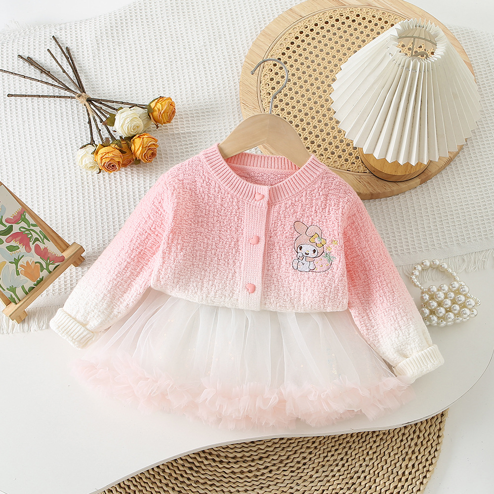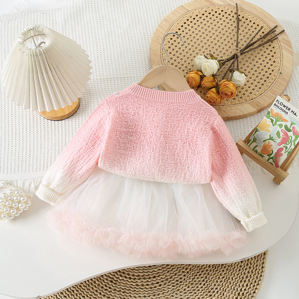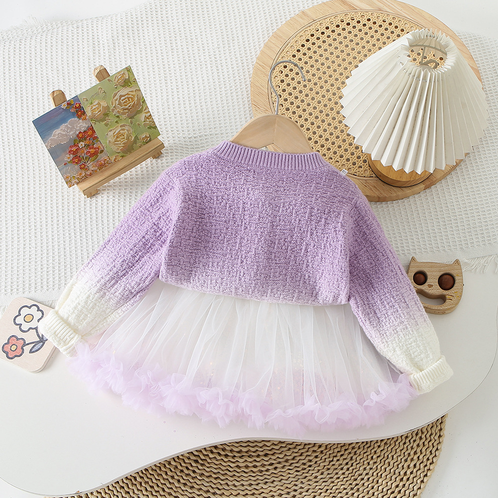 봄 가을과 가을 세트 소녀 새로운 아이들의 세련된 유행 옷 아기 메쉬 투투 스커트 세트 봄과 가을