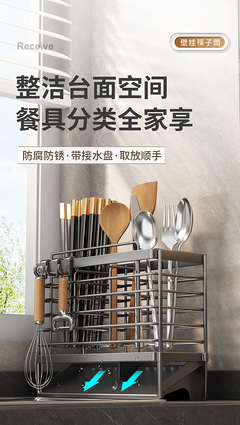 젓가락 저장 상자 주방 젓가락 케이지 벽걸이 형 가정용 칼 숟가락 수프 숟가락 저장 랙 국경 독점스토어 가기