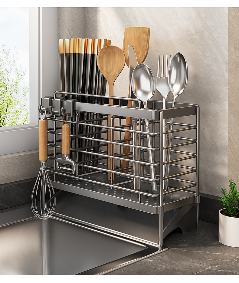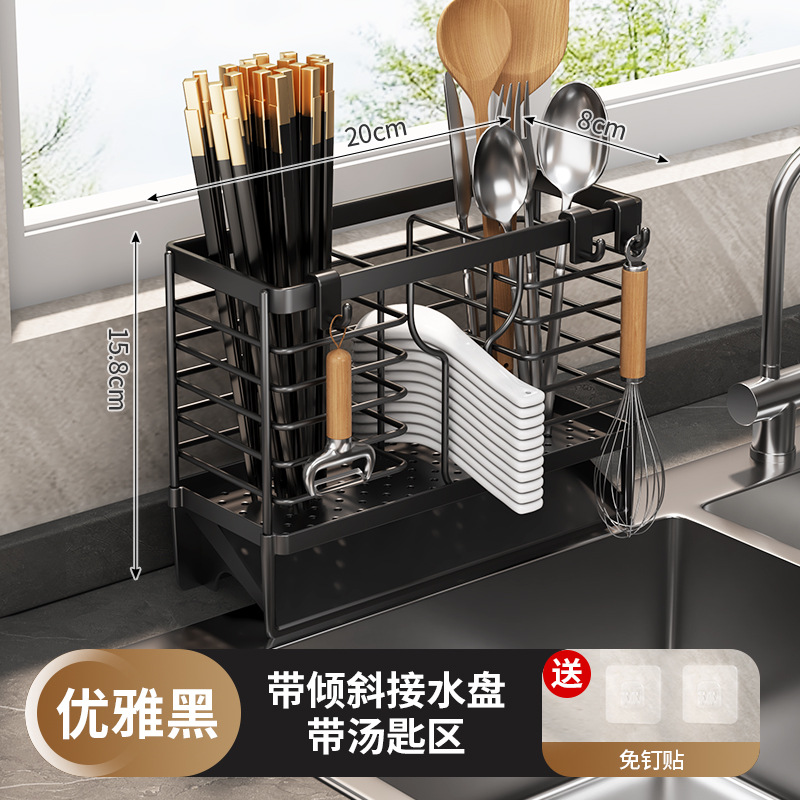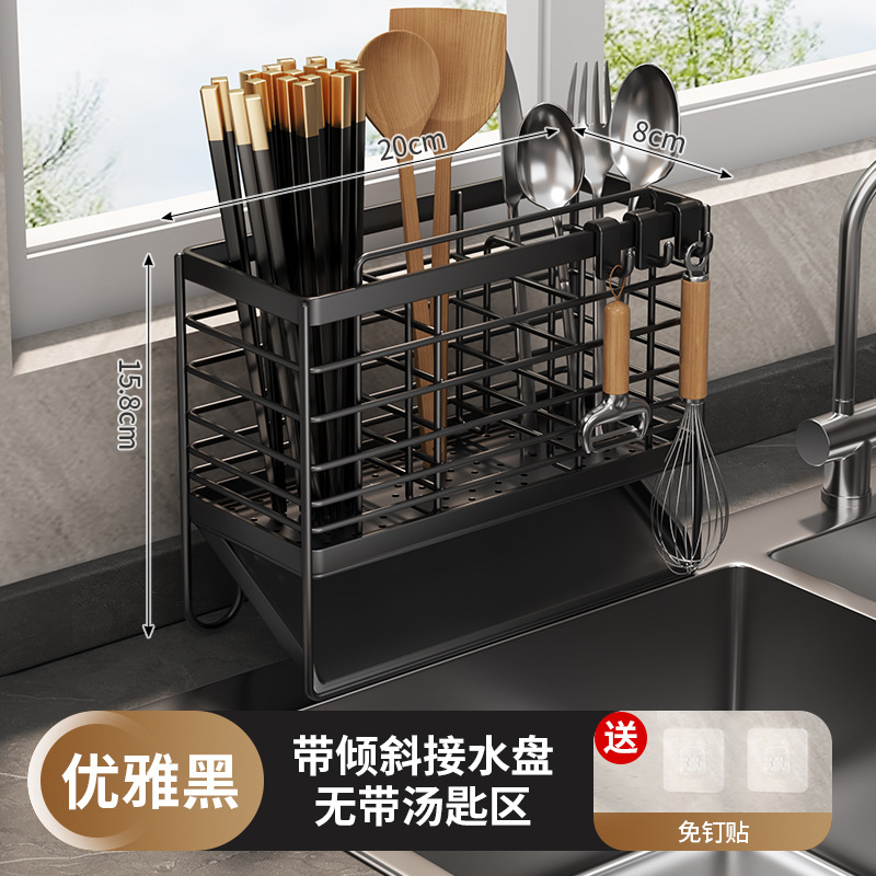 • 자동 배수 젓가락 홀더 (블랙) 숟가락 지역