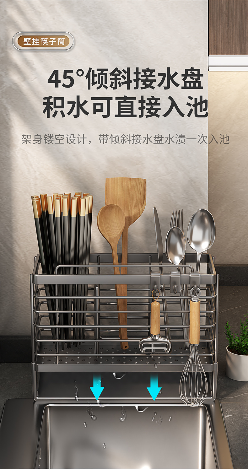 젓가락 저장 상자 주방 젓가락 케이지 벽걸이 형 가정용 칼 숟가락 수프 숟가락 저장 랙 국경 독점