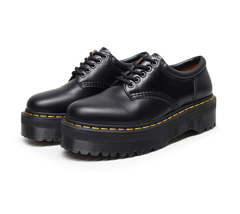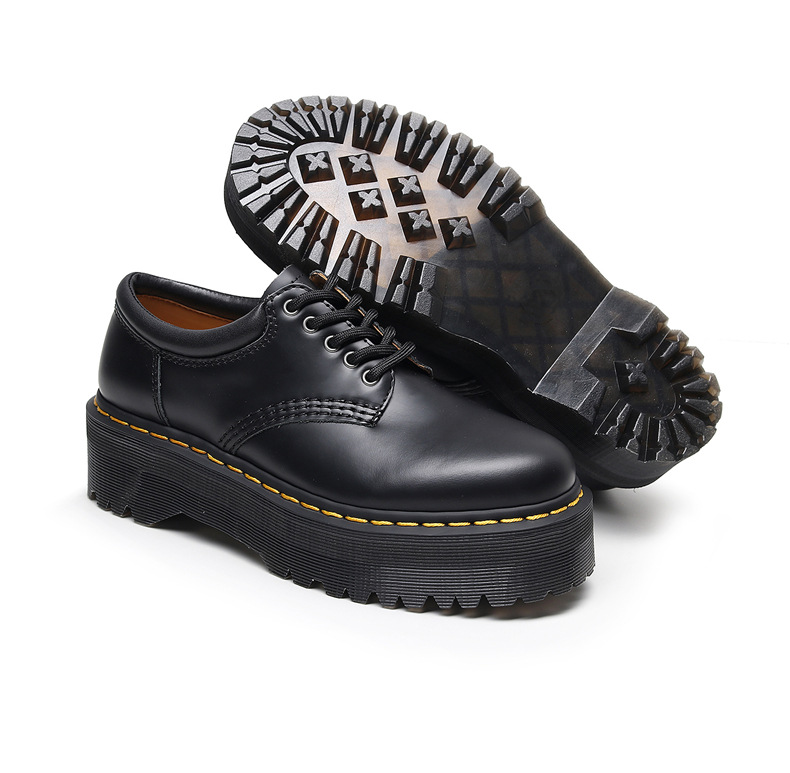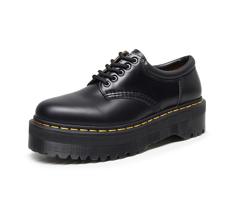 Leyu 8053 두꺼운 밑창 로우탑 부츠 영국 스타일 캐주얼 작은 가죽 신발 다목적 학생 슬리밍 짧은 부츠 여성용