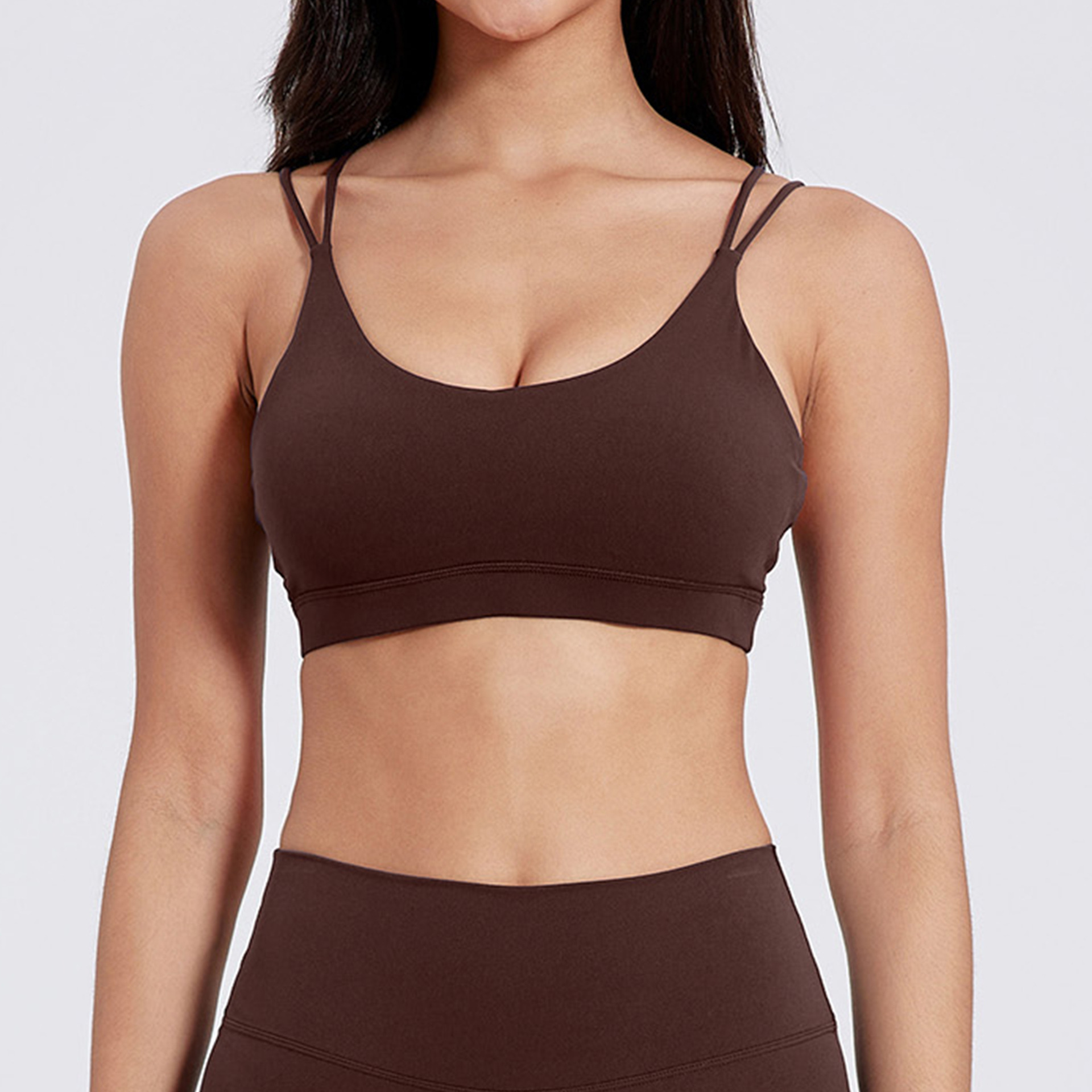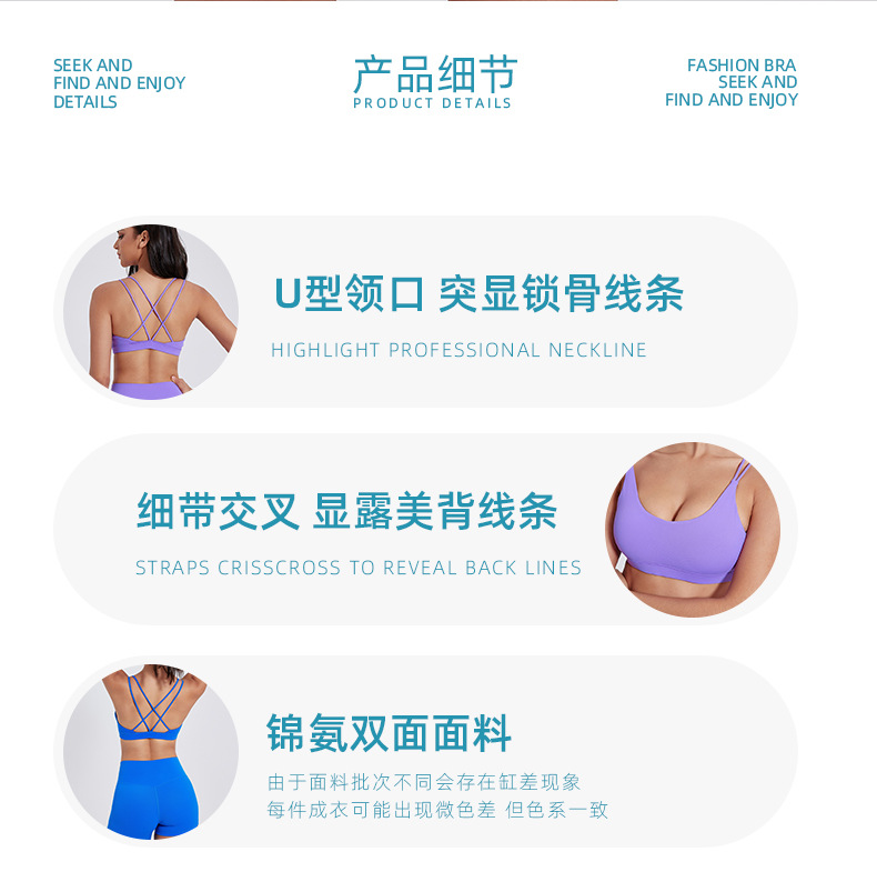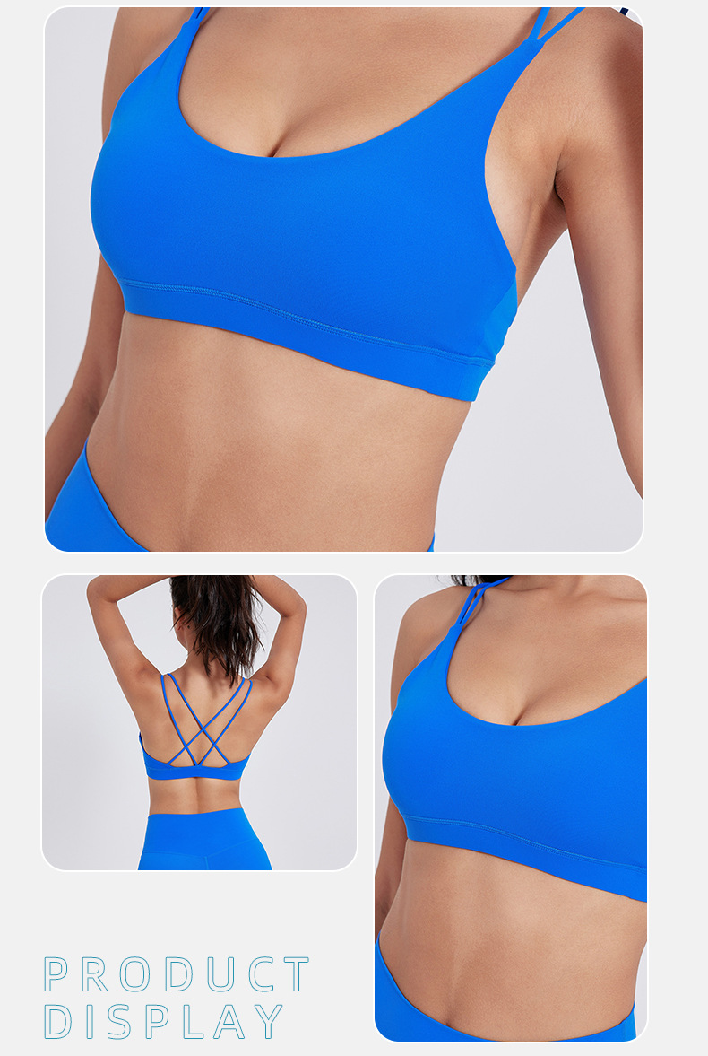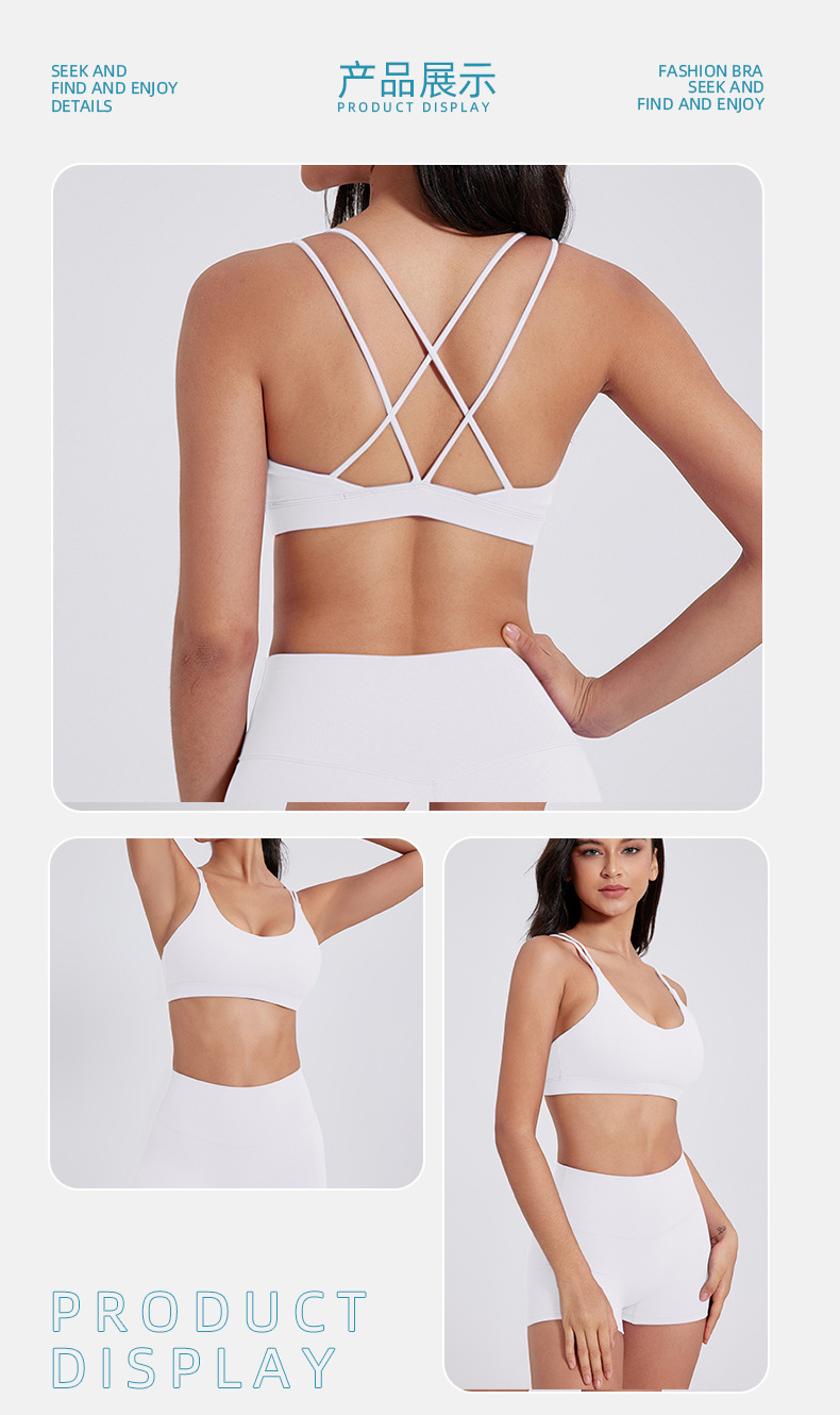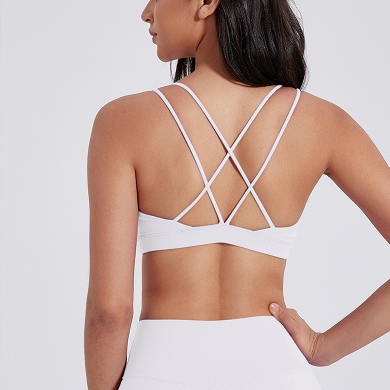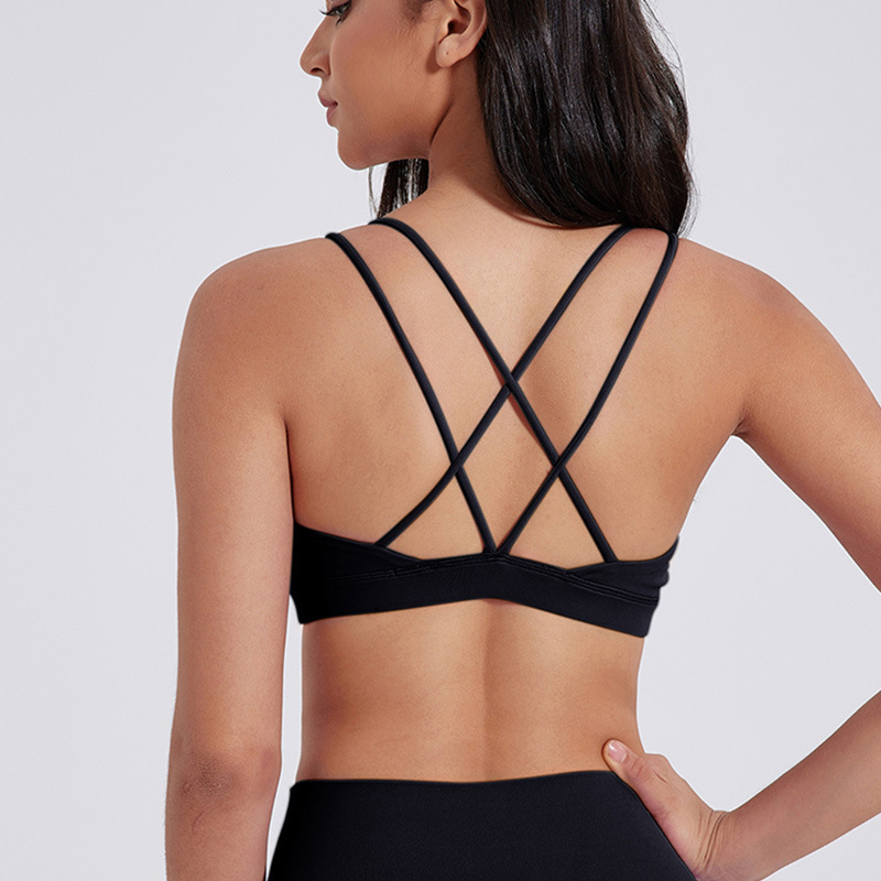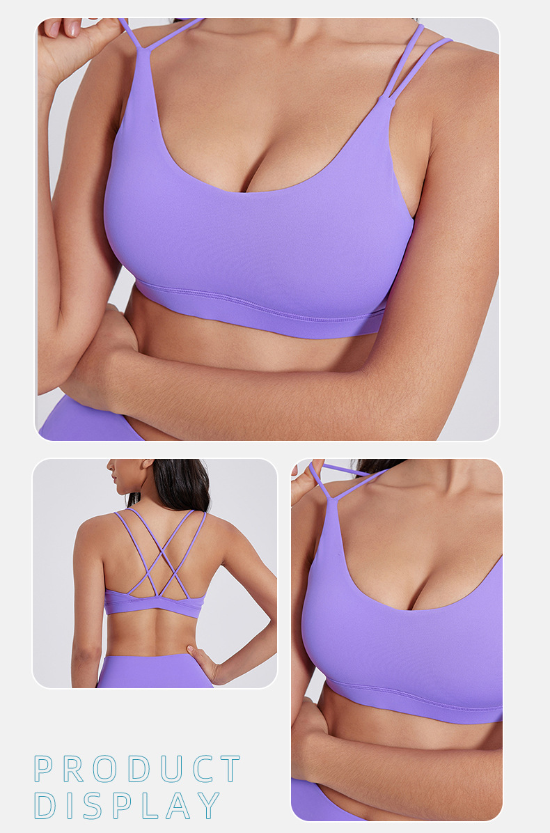 유럽 및 미국 스타일의 누드 느낌 요가 브라, 여성용 타이트핏 속건 스포츠 요가복, 아웃도어 러닝, 아름다운 등 라인을 살리는 피트니스 속옷스토어 가기