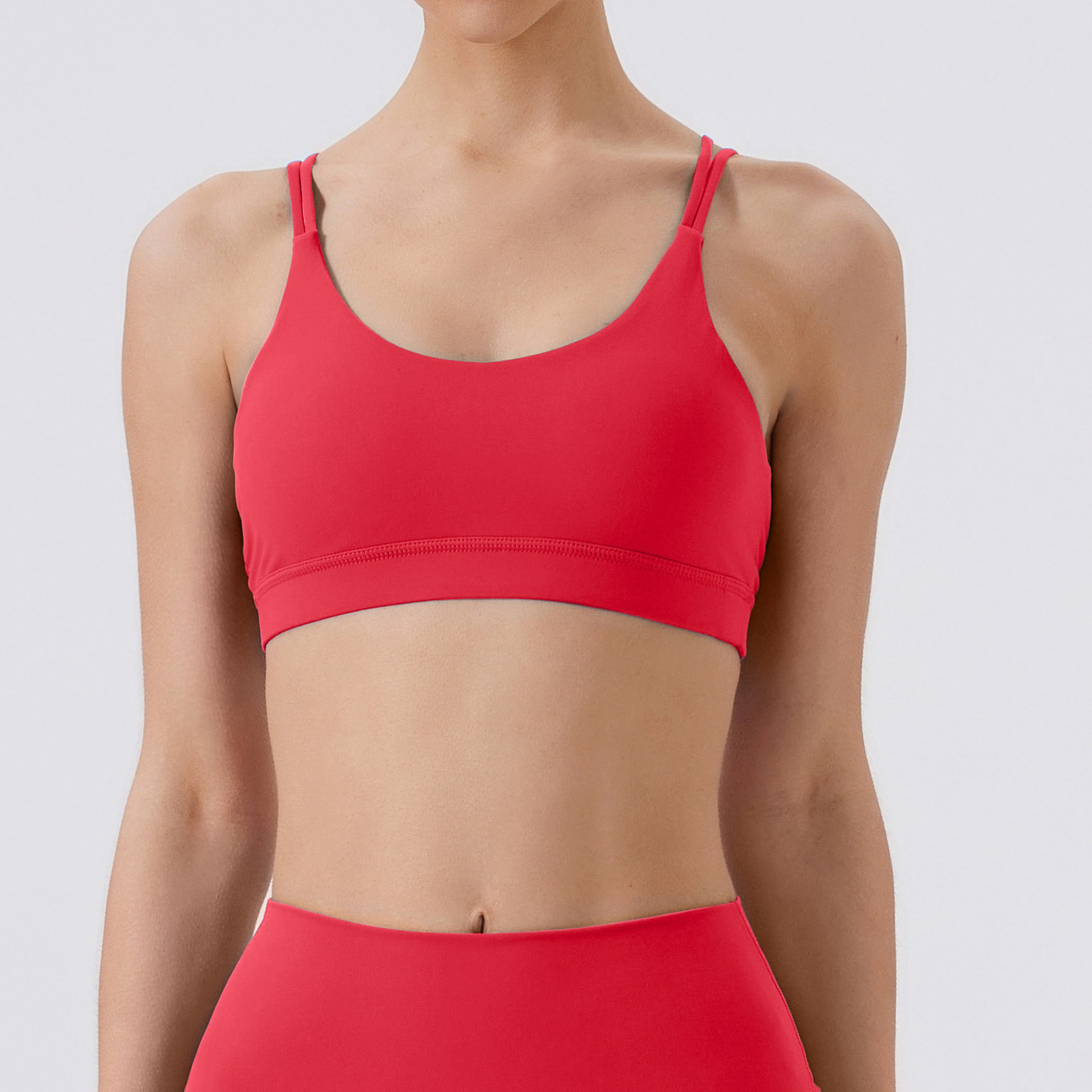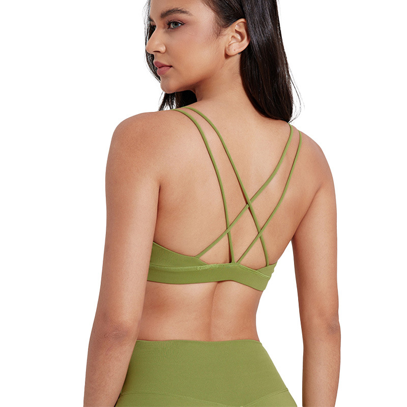 유럽 및 미국 스타일의 누드 느낌 요가 브라, 여성용 타이트핏 속건 스포츠 요가복, 아웃도어 러닝, 아름다운 등 라인을 살리는 피트니스 속옷