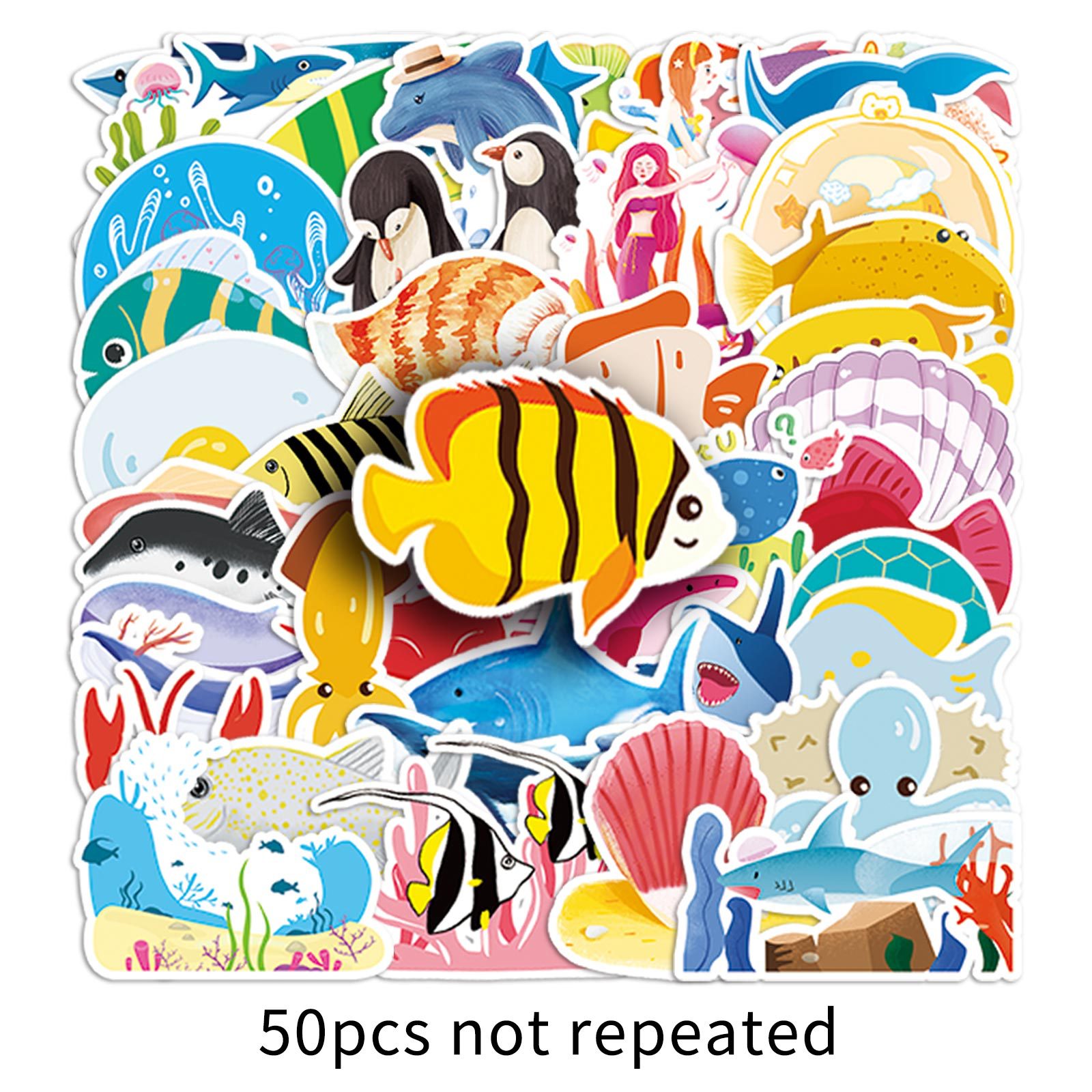 50 바다 스티커 만화 동물 작은 신선한 귀여운 창조적 인 방수 장식 손 계정 goo 카드 조경 스티커