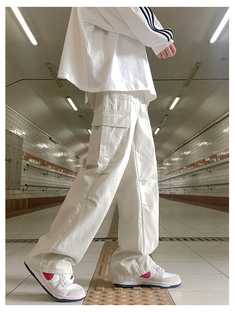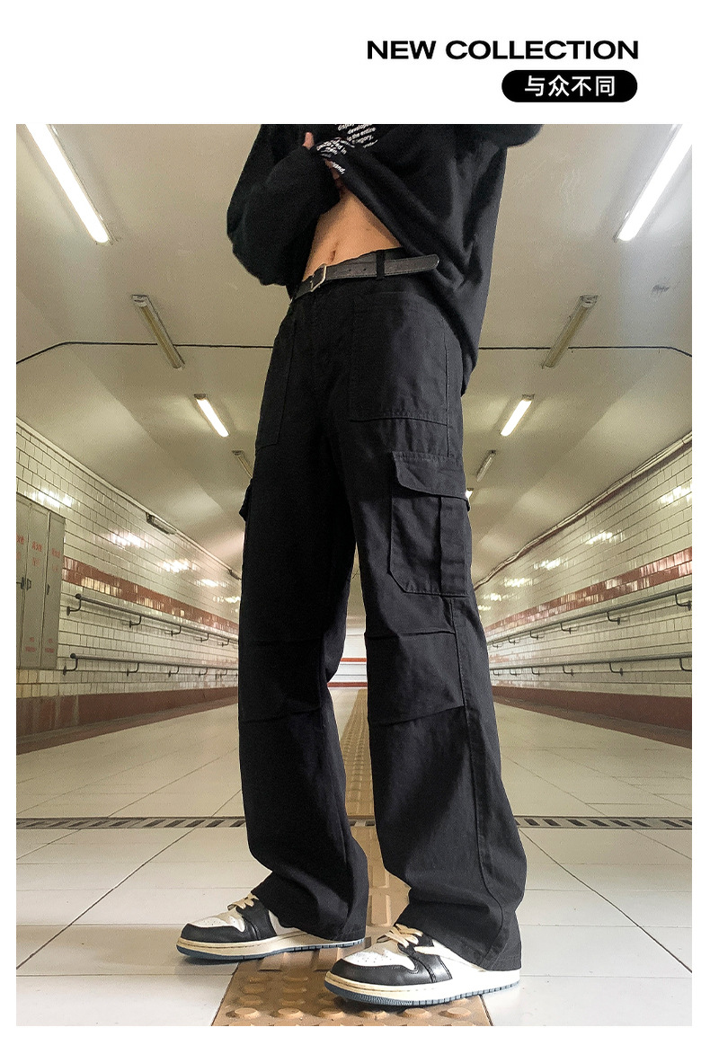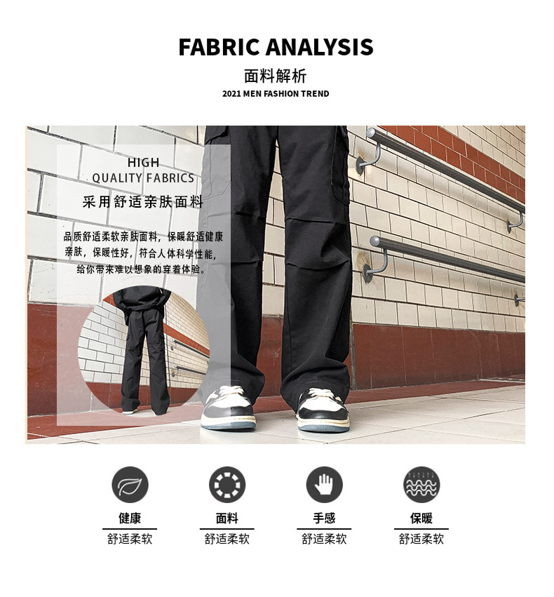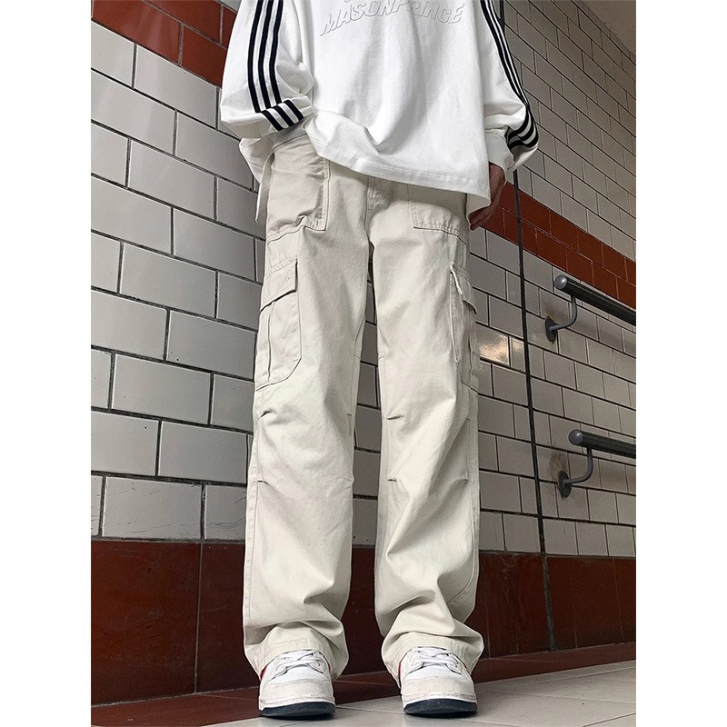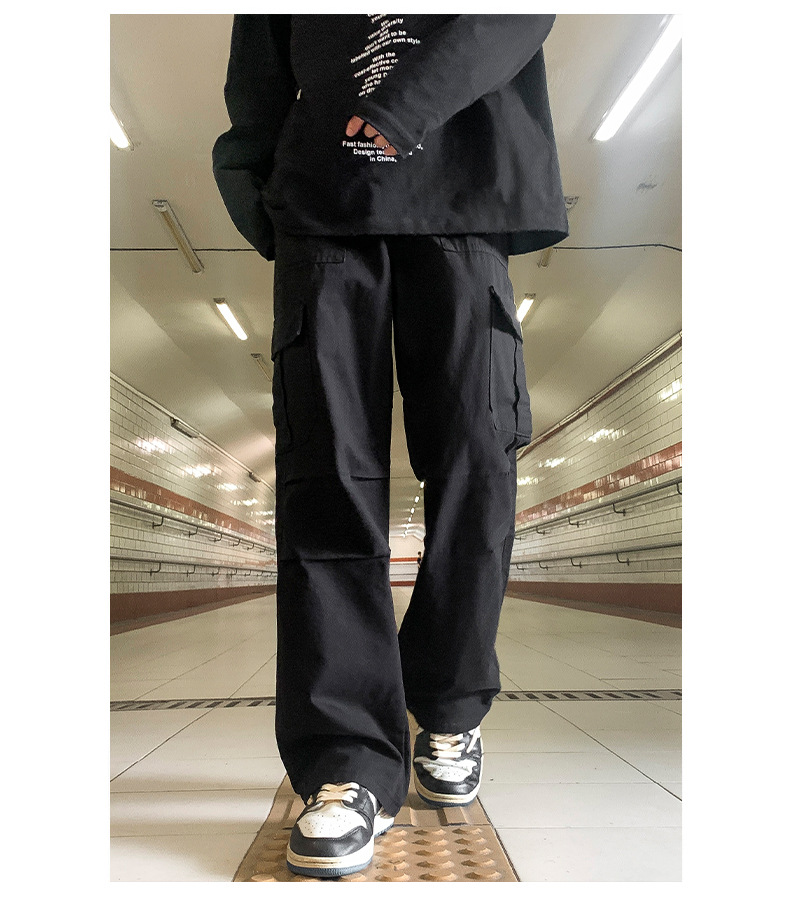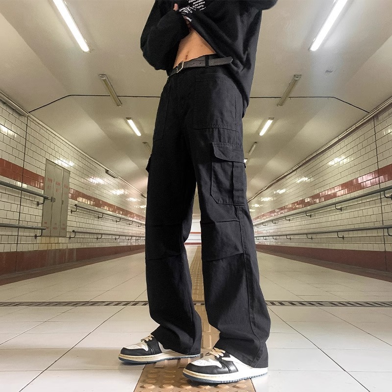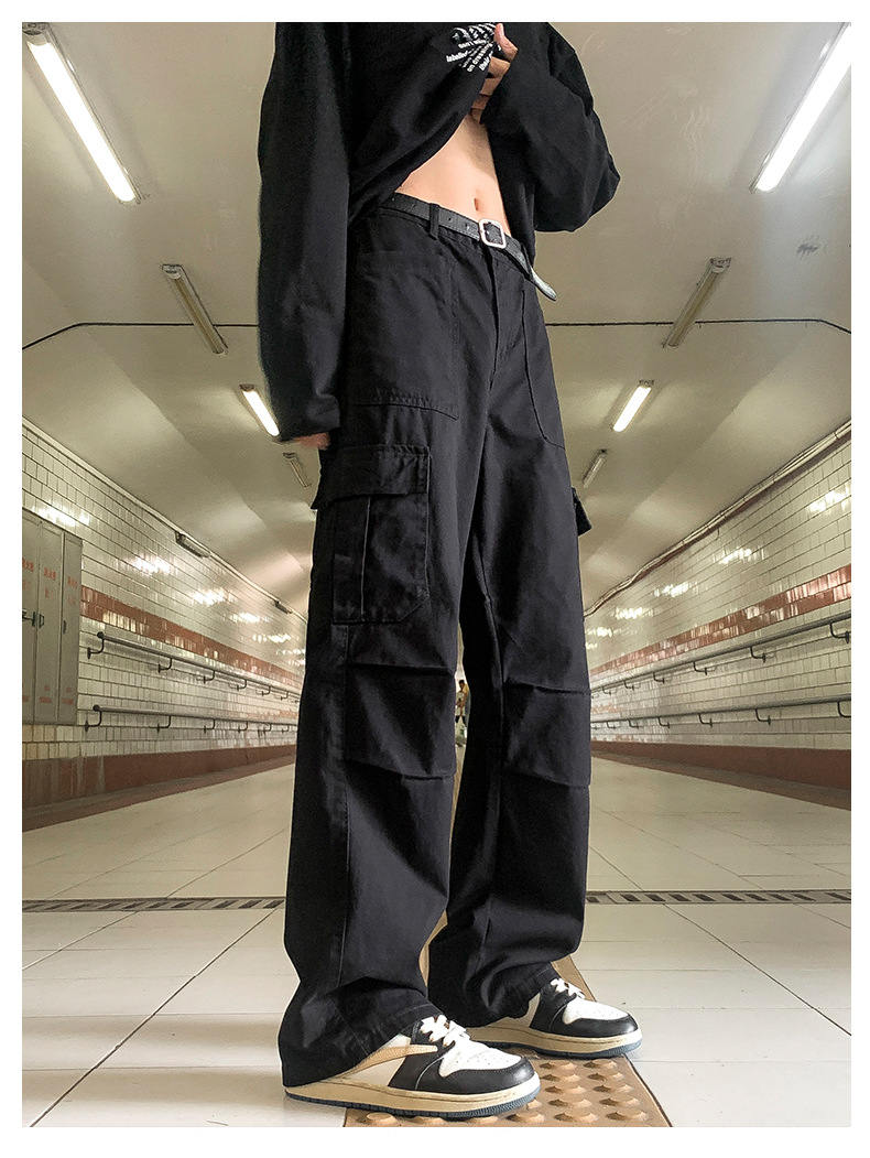 검은 낙하산 병 바지 남성 여름 시즌 미국 스타일 하이 스트리트 느슨한 스트레이트 와이드 다리 캐주얼 바지 패션 브랜드 분위기 바지스토어 가기