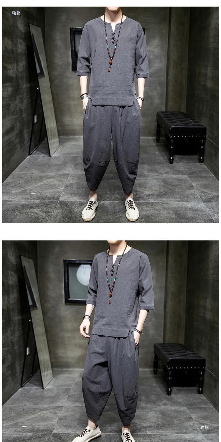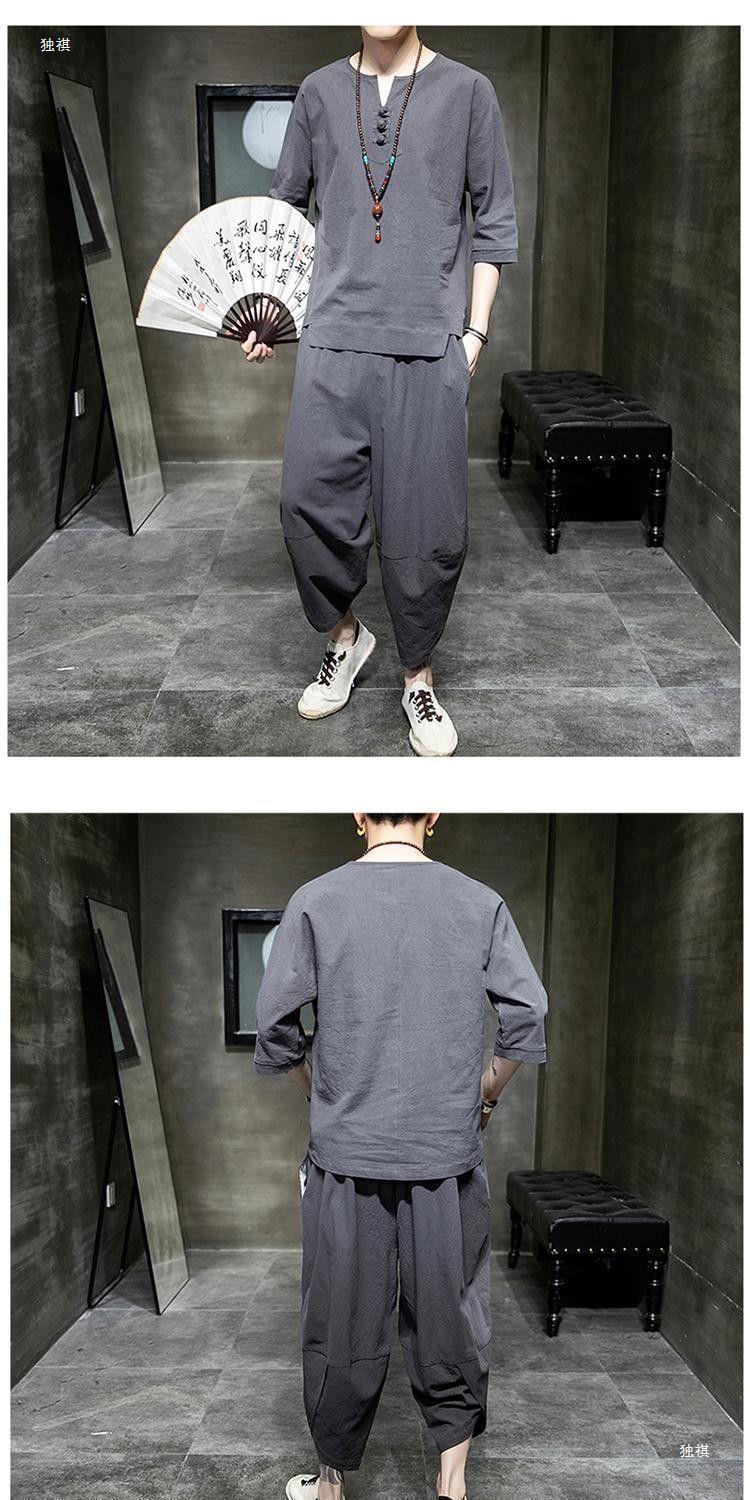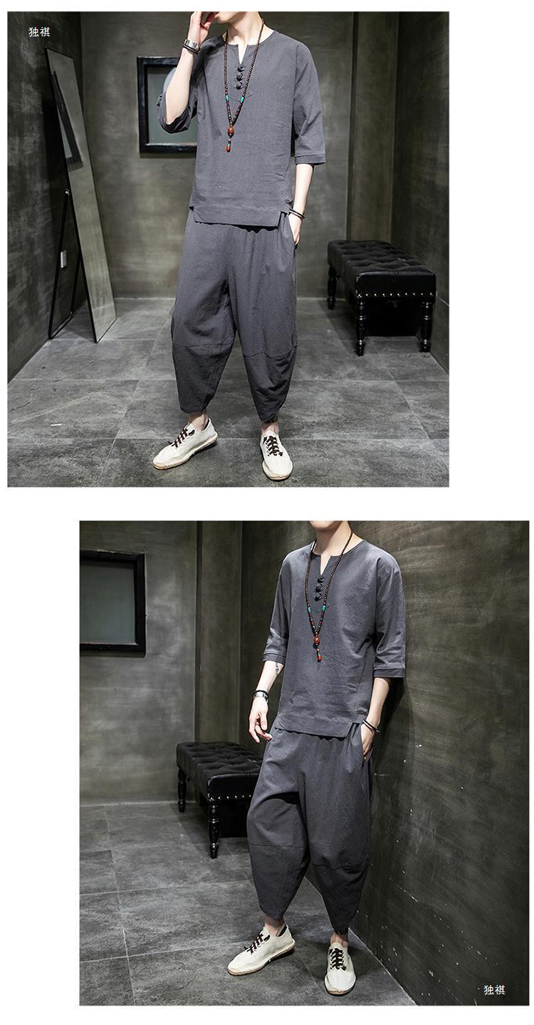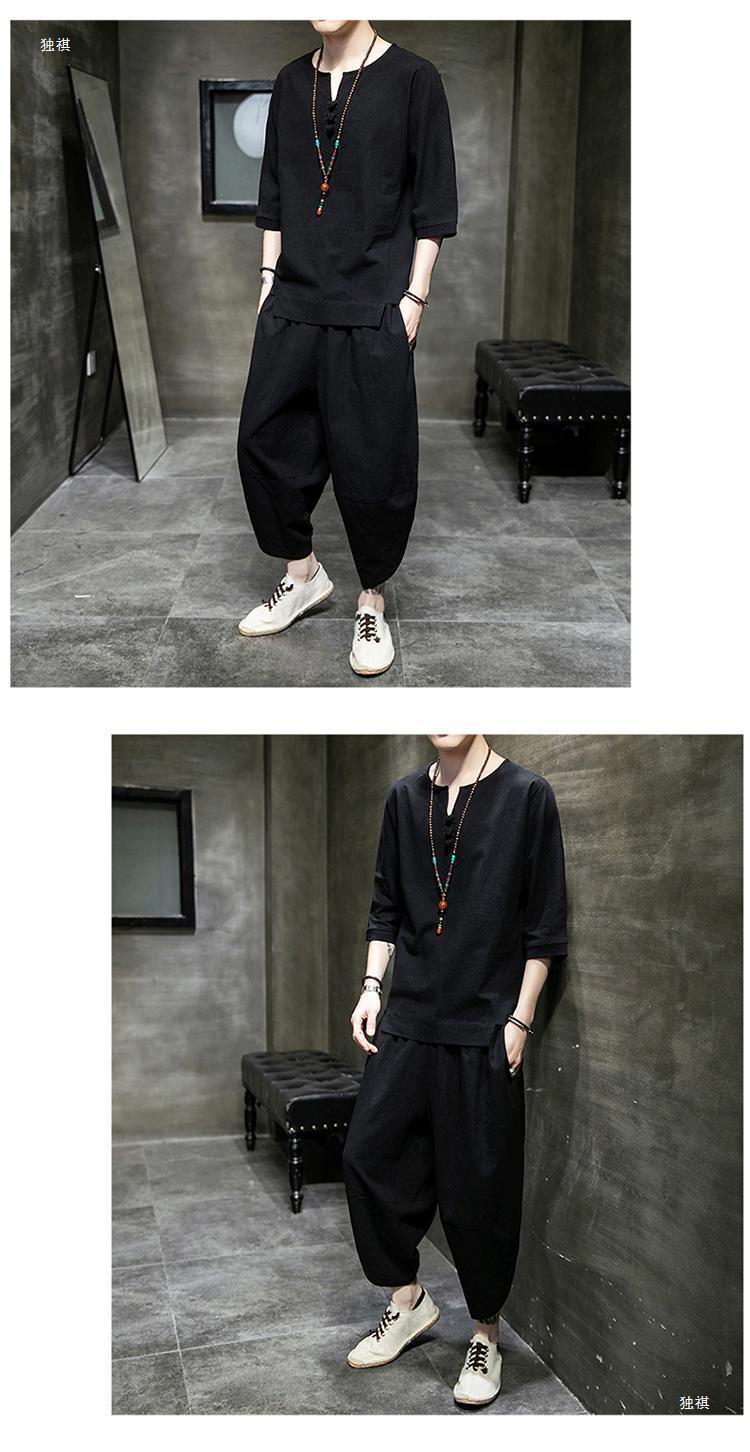 리넨 남성 반팔 티셔츠 중국 스타일 남성 중국 스타일 코튼 앤 리넨 세트 여름 부처 스타일 탕 세트 한푸 젠 세트 차 세트