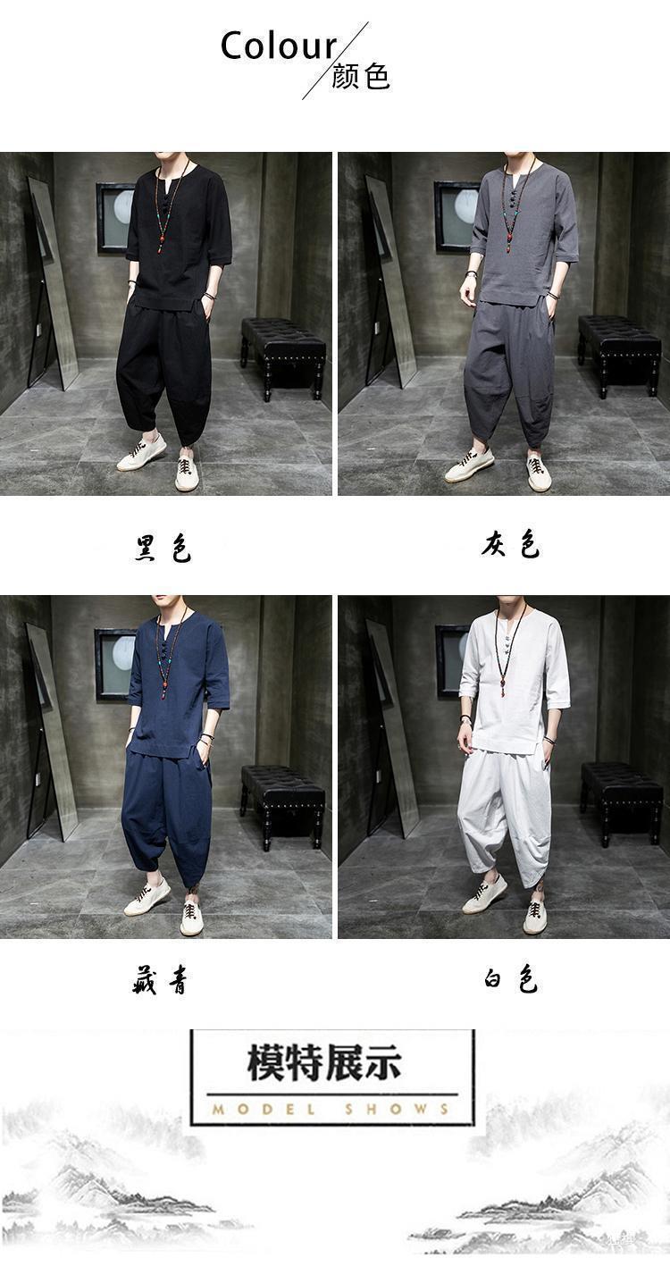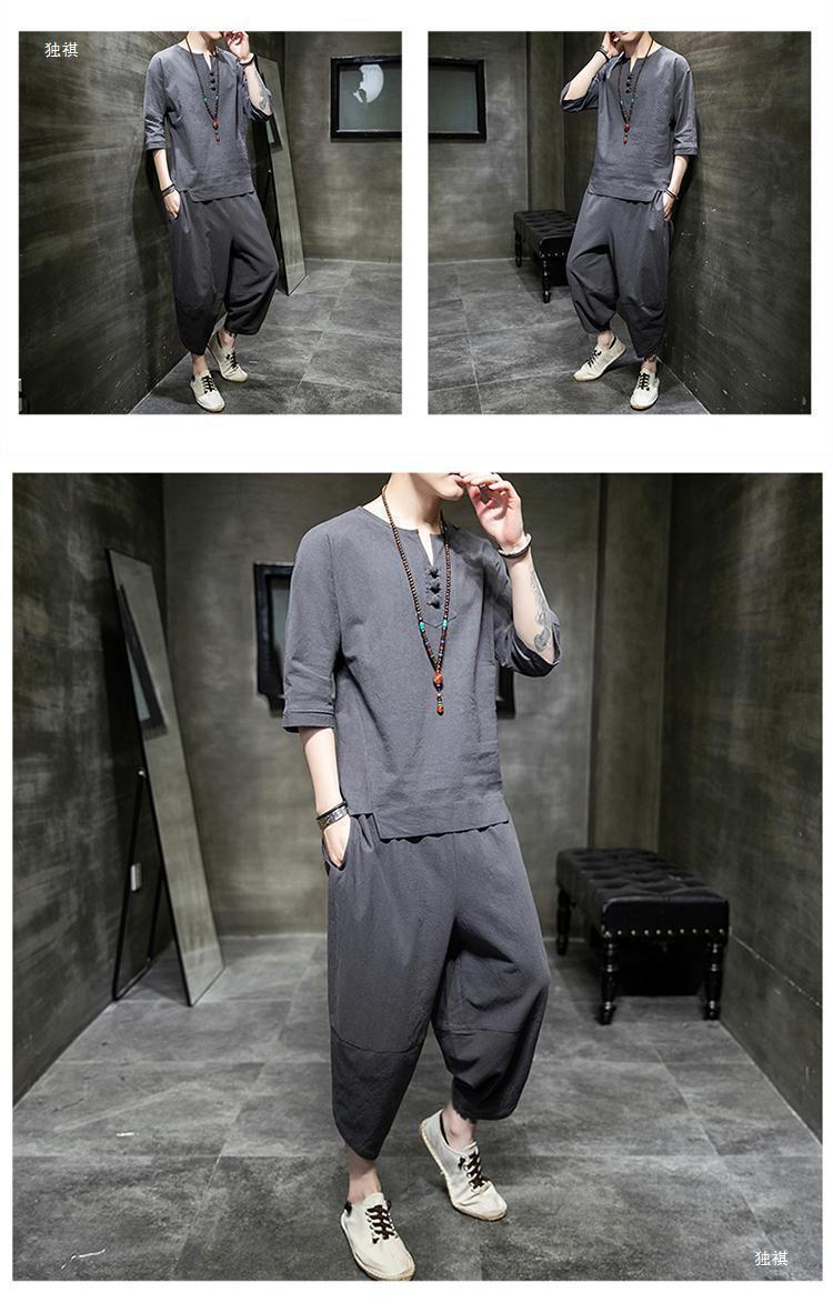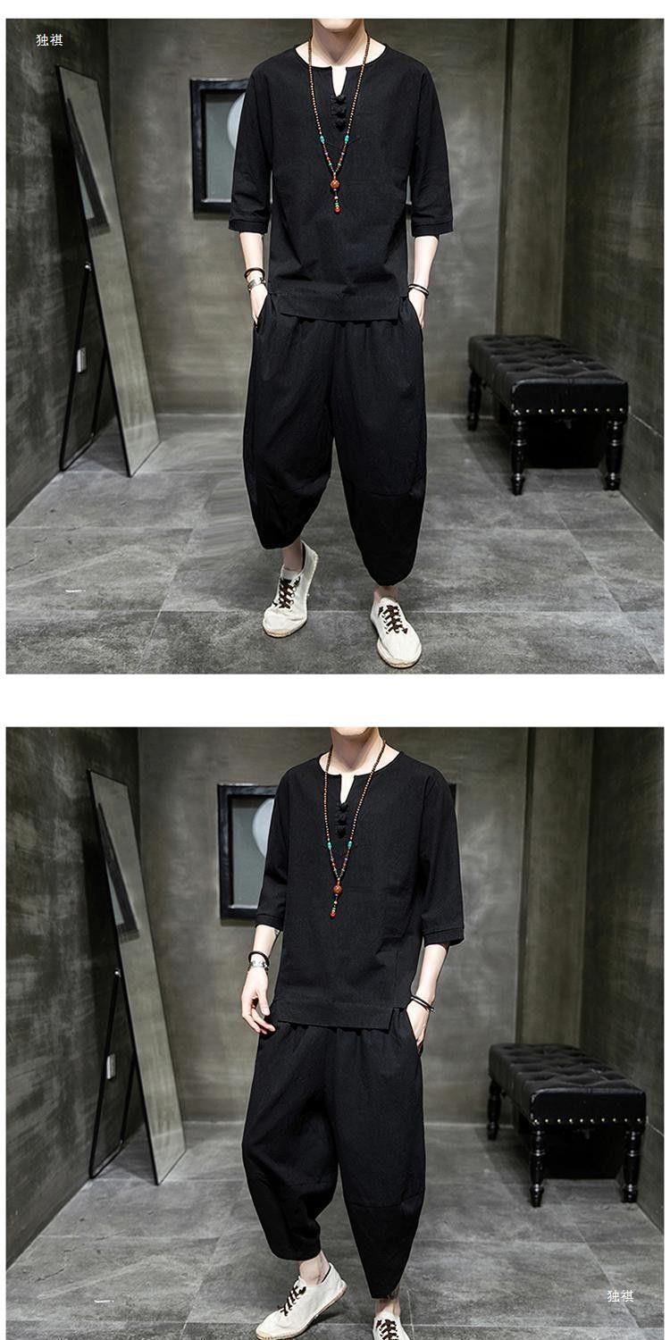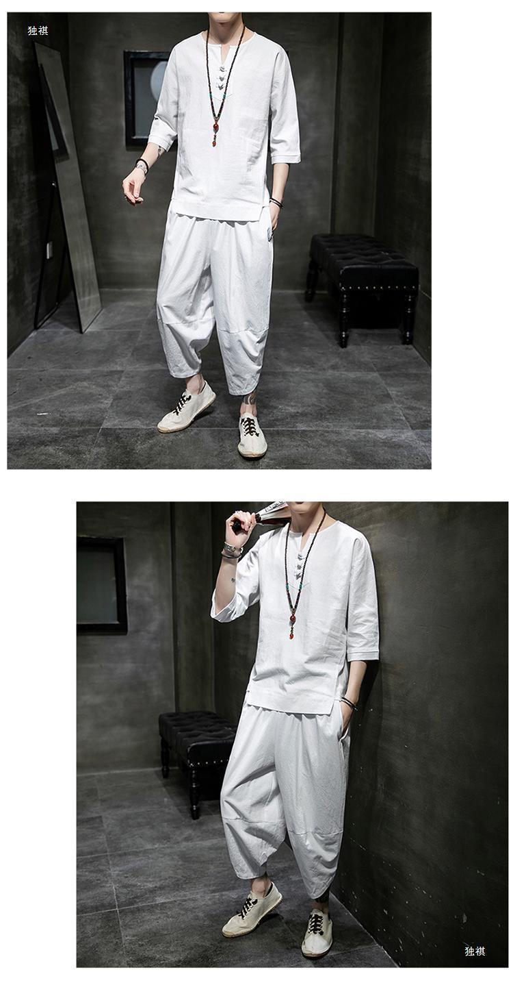 리넨 남성 반팔 티셔츠 중국 스타일 남성 중국 스타일 코튼 앤 리넨 세트 여름 부처 스타일 탕 세트 한푸 젠 세트 차 세트
