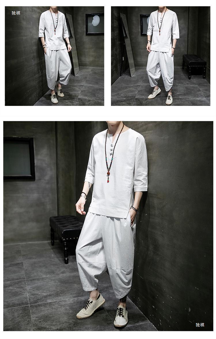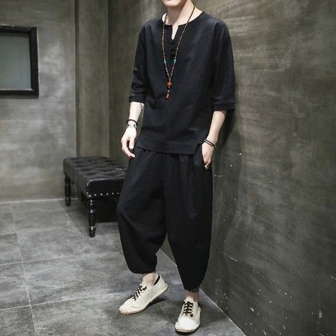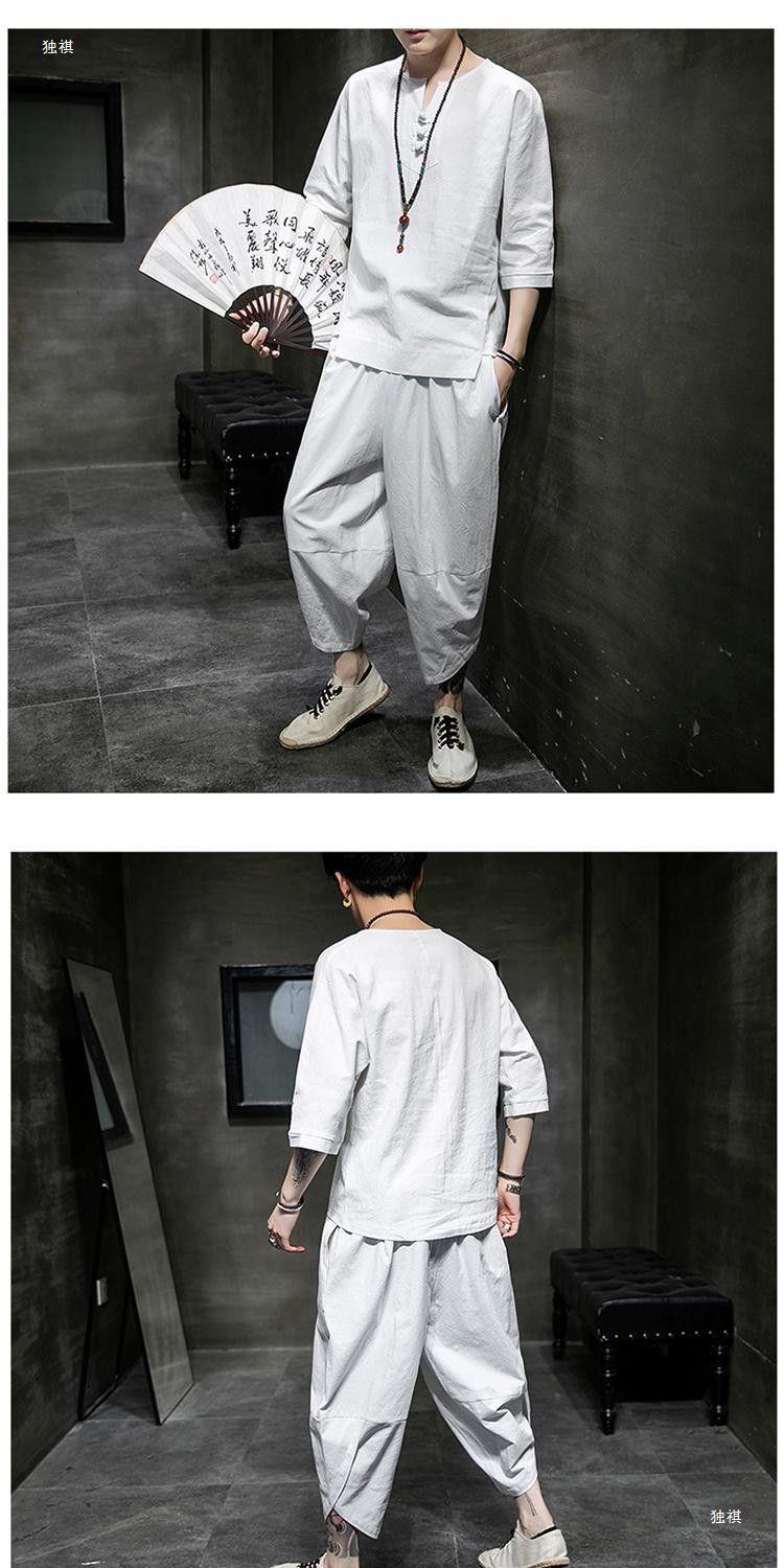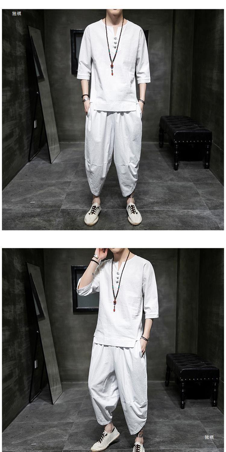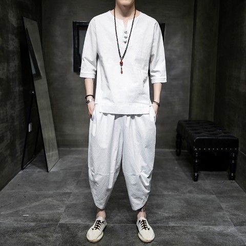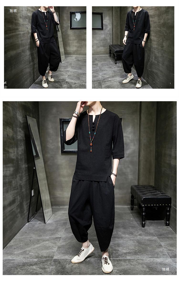 리넨 남성 반팔 티셔츠 중국 스타일 남성 중국 스타일 코튼 앤 리넨 세트 여름 부처 스타일 탕 세트 한푸 젠 세트 차 세트