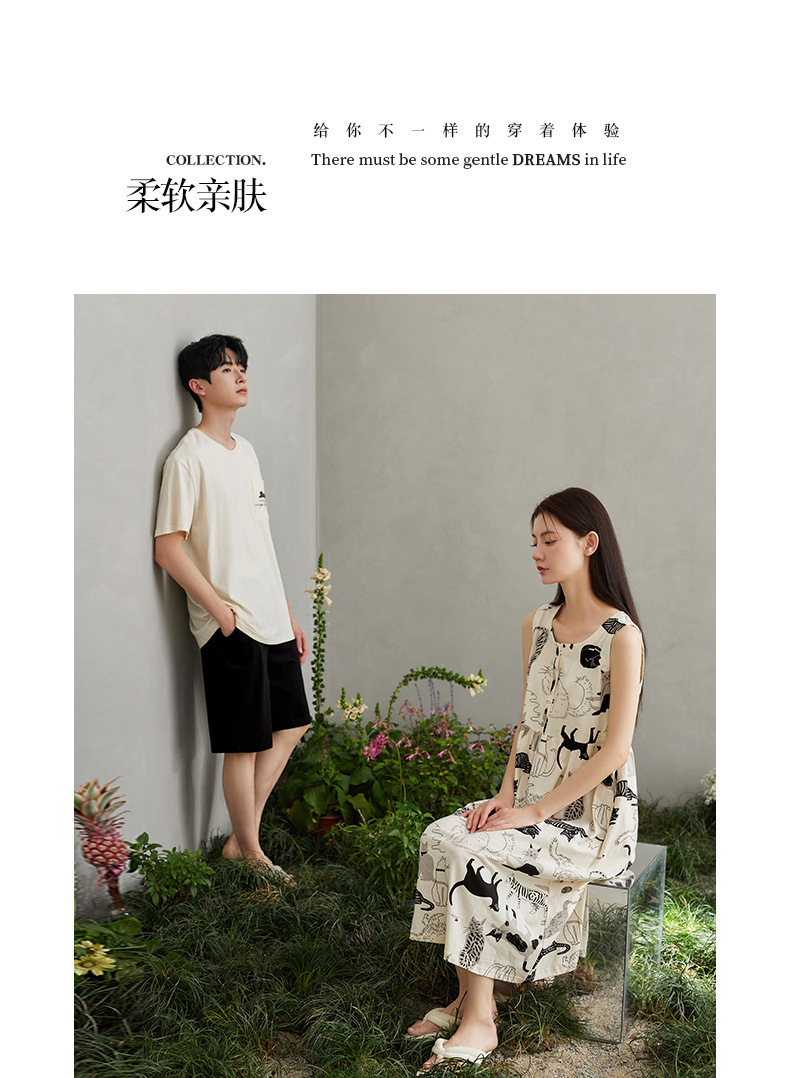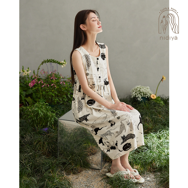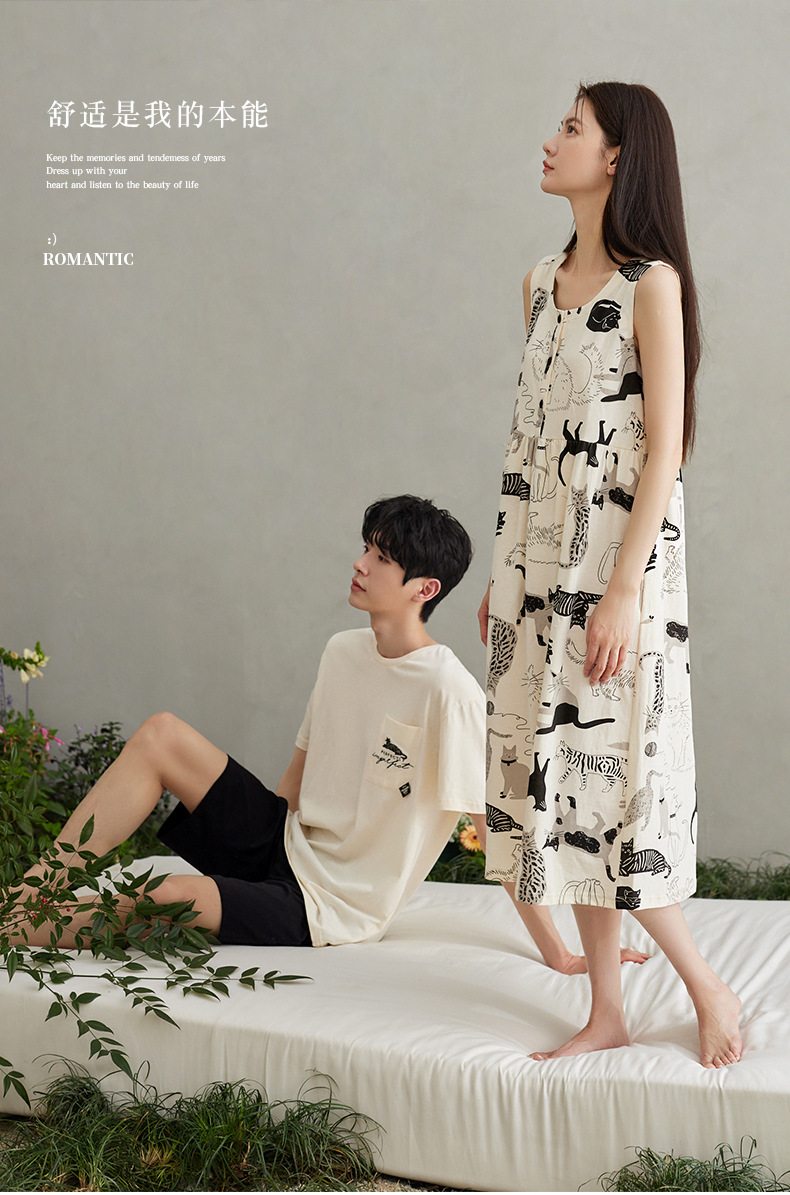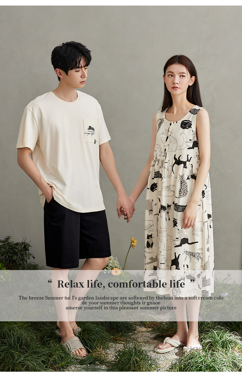 Nidia 새로운 여름 커플 얇은 잠옷 여성의 순수한면 느슨한 조끼 남자 아웃웨어 홈 옷스토어 가기