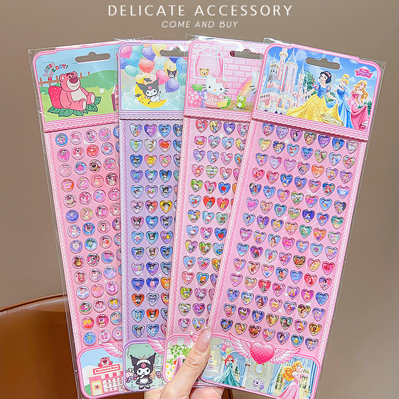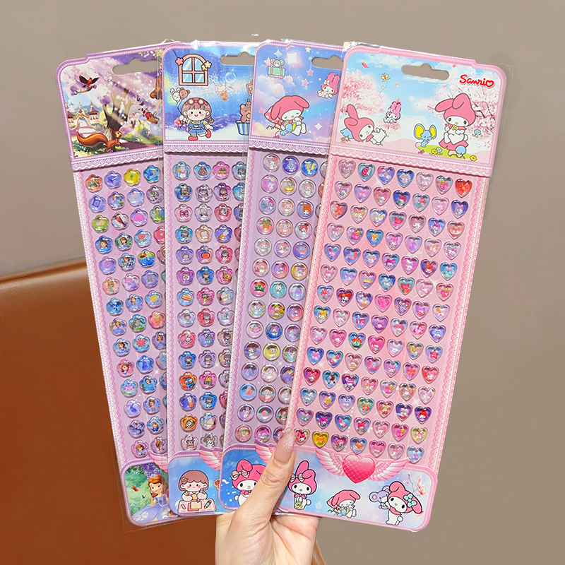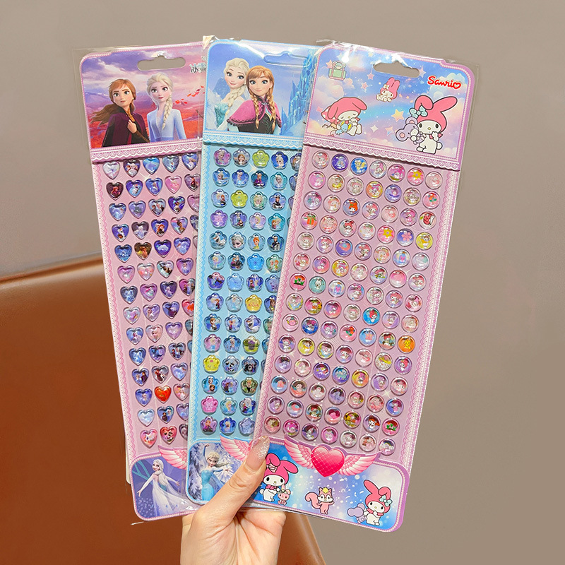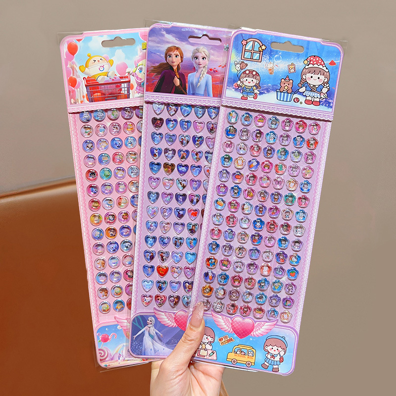 어린이 만화 보석 스티커 크리스탈 다이아몬드 스티커 그림 종이 소녀 공주 얼음과 눈 입체 거품 스티커 어린 소녀의 장난감스토어 가기