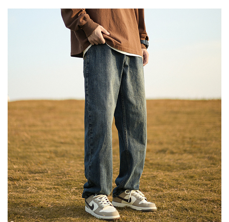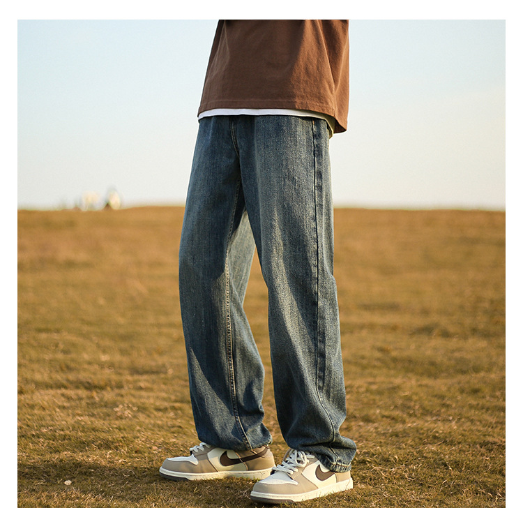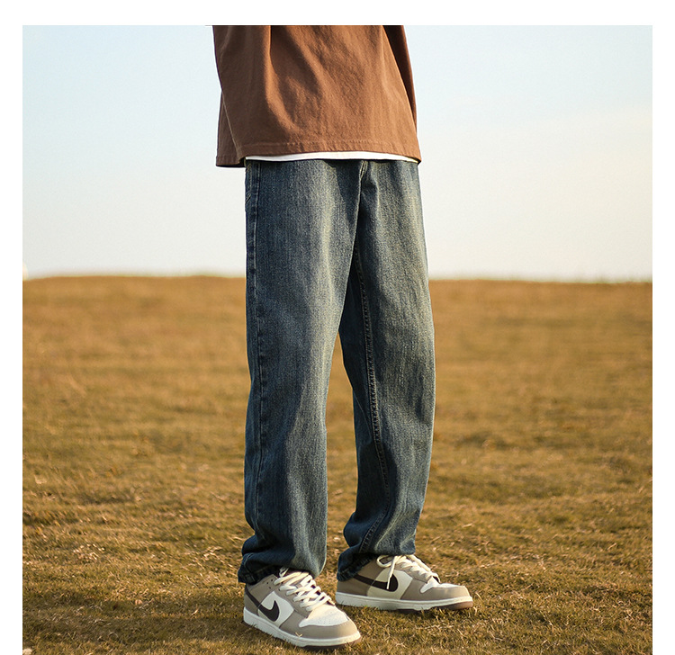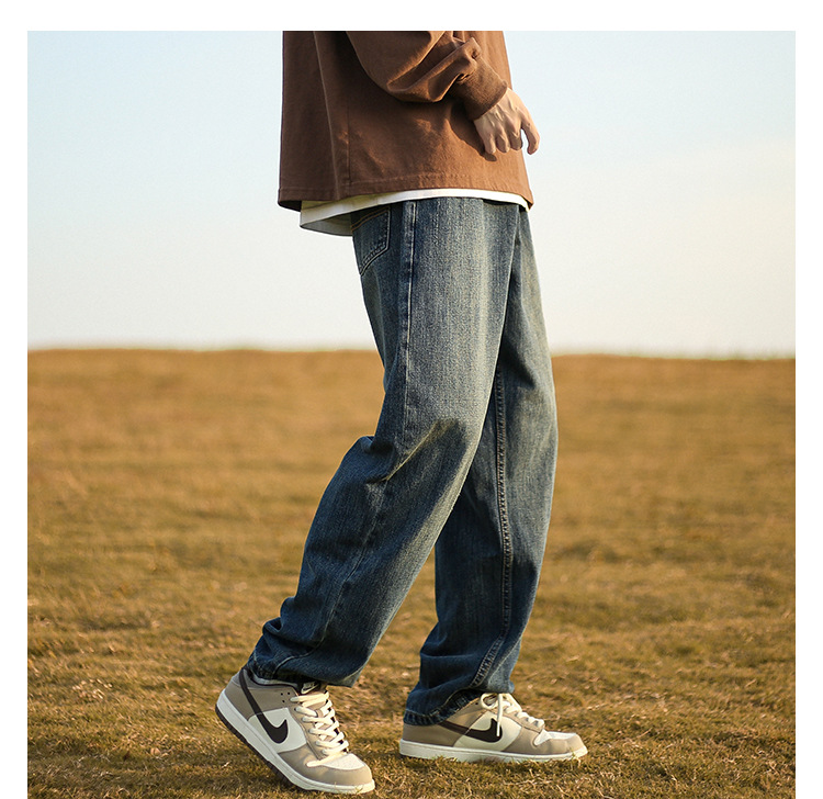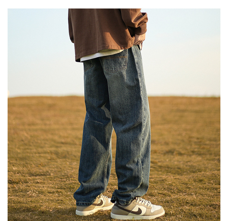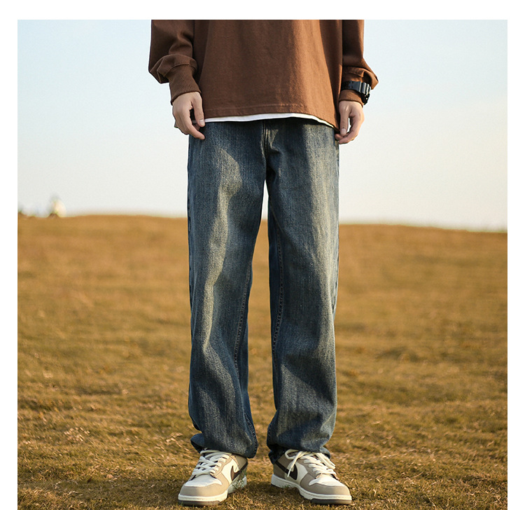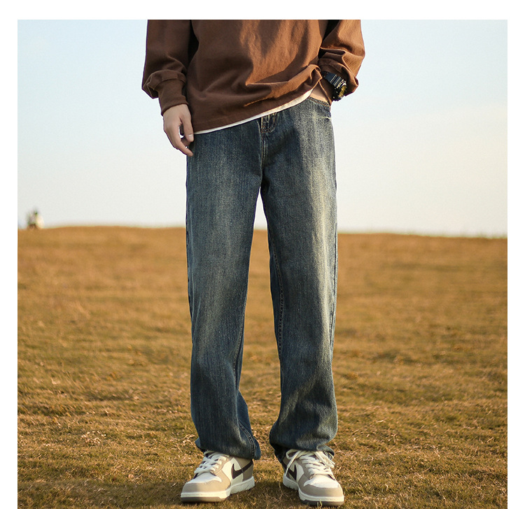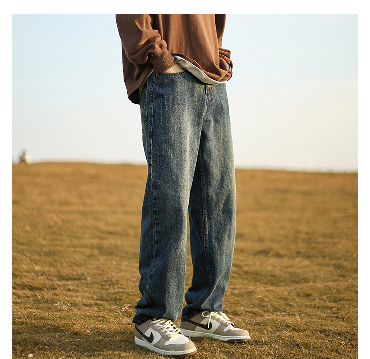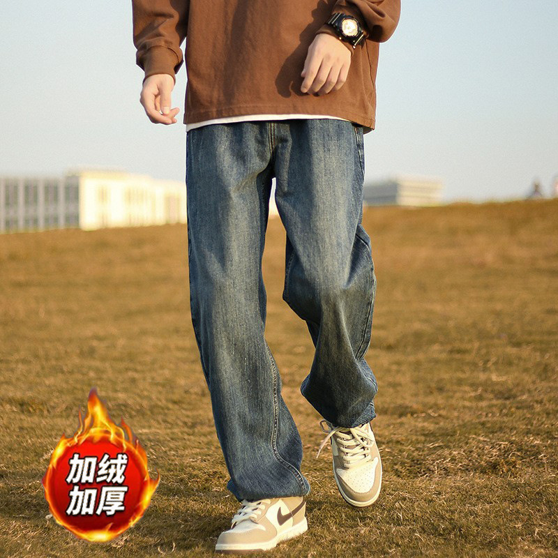 NASA 빈티지 세탁 청바지 남성용 가을과 겨울 기모 아메리칸 스타일 하이 스트리트 팬츠 유행 느슨한 넓은 다리 스트레이트 바지스토어 가기