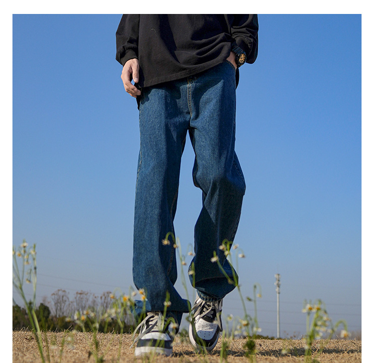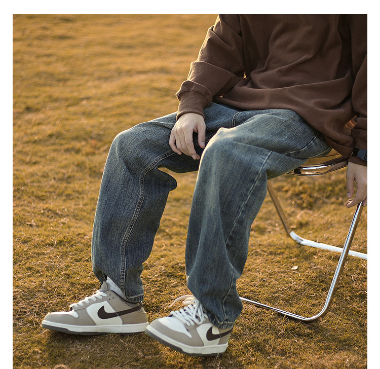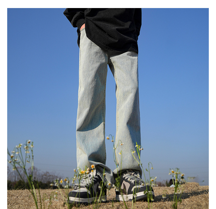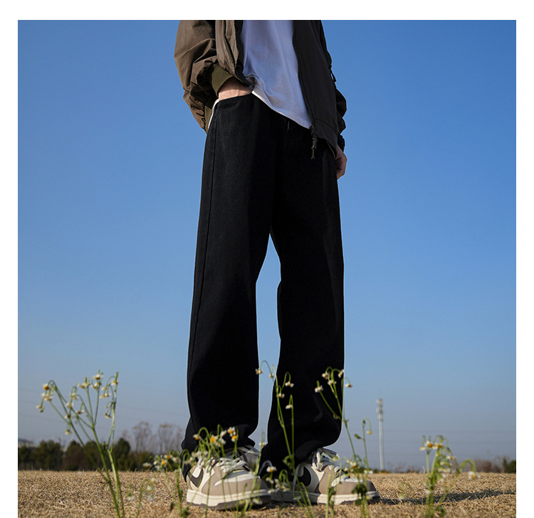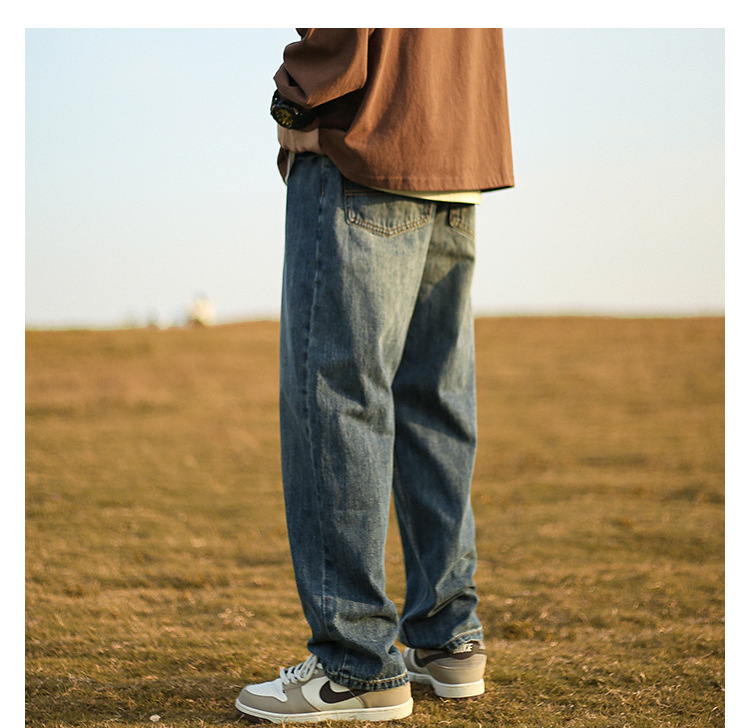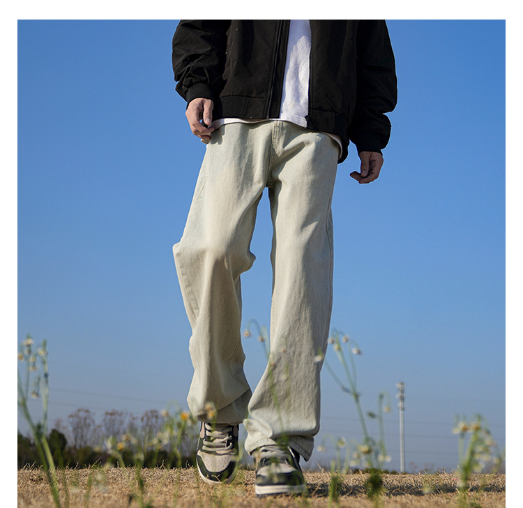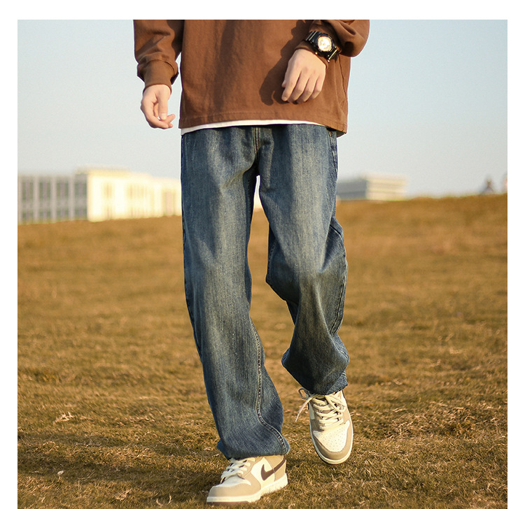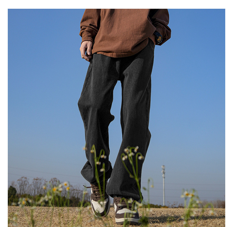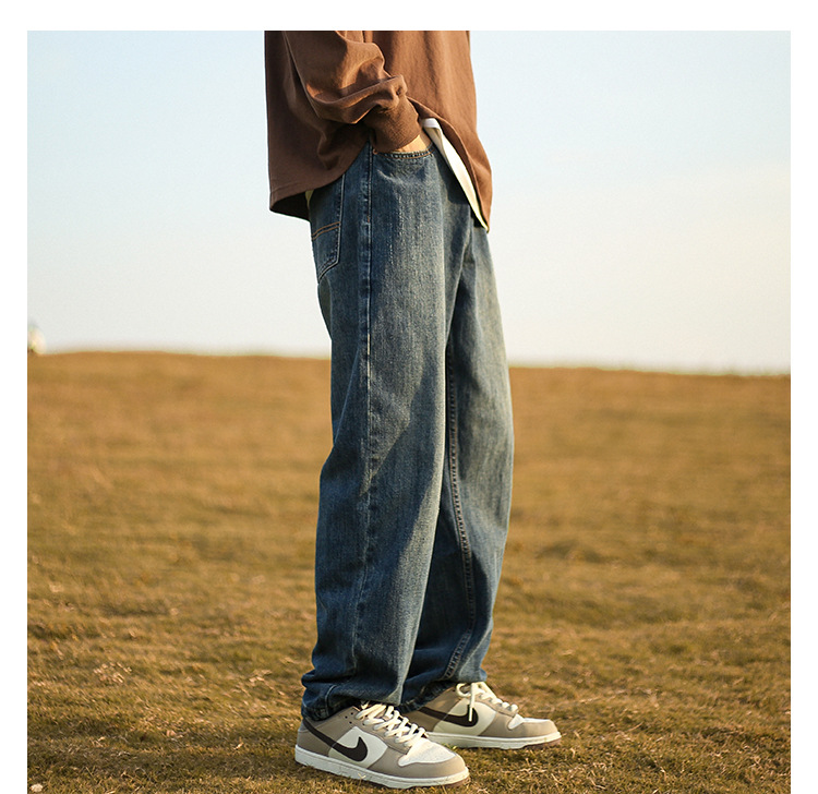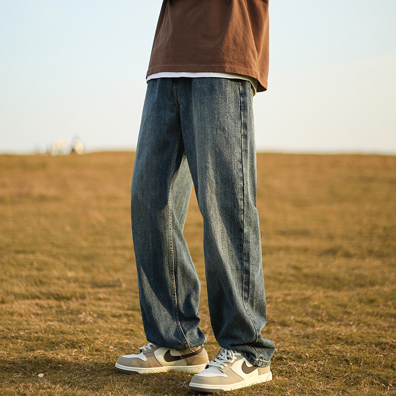 NASA 빈티지 세탁 청바지 남성용 가을과 겨울 기모 아메리칸 스타일 하이 스트리트 팬츠 유행 느슨한 넓은 다리 스트레이트 바지스토어 가기