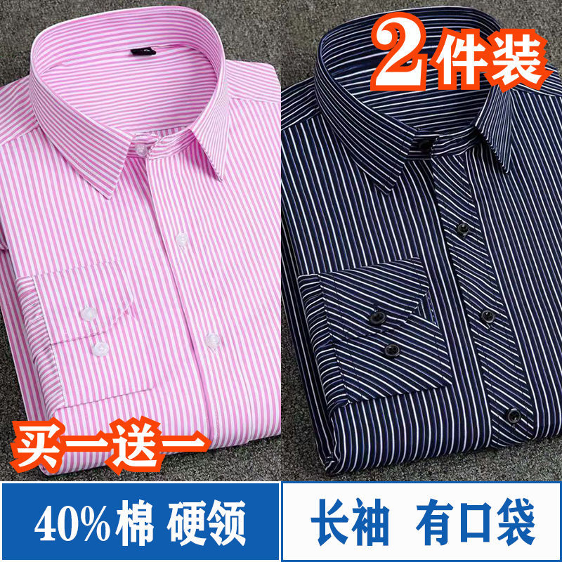 봄과 가을 줄무늬 코튼 툴링 긴팔 남성 셔츠 캐주얼 비즈니스 주름 방지 비 다림질 젊고 중년 올매치 코튼 셔츠스토어 가기
