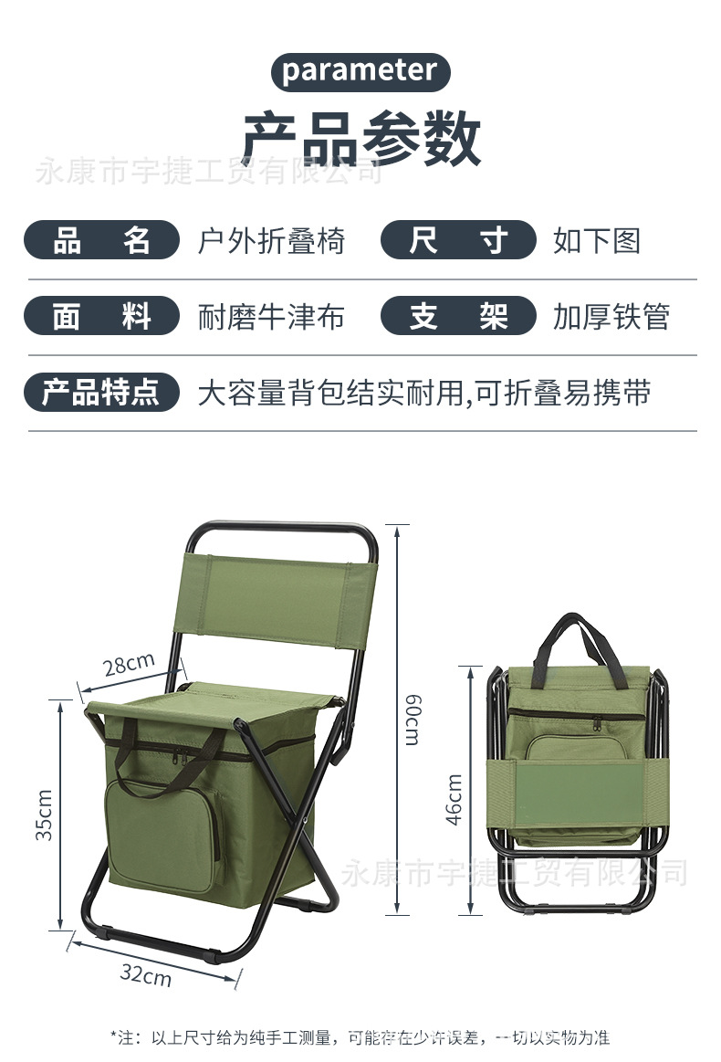 휴대용 야외 접이식 아이스 백 의자 등받이 단열 기능 3-in -1 레저 캠핑 낚시 의자스토어 가기
