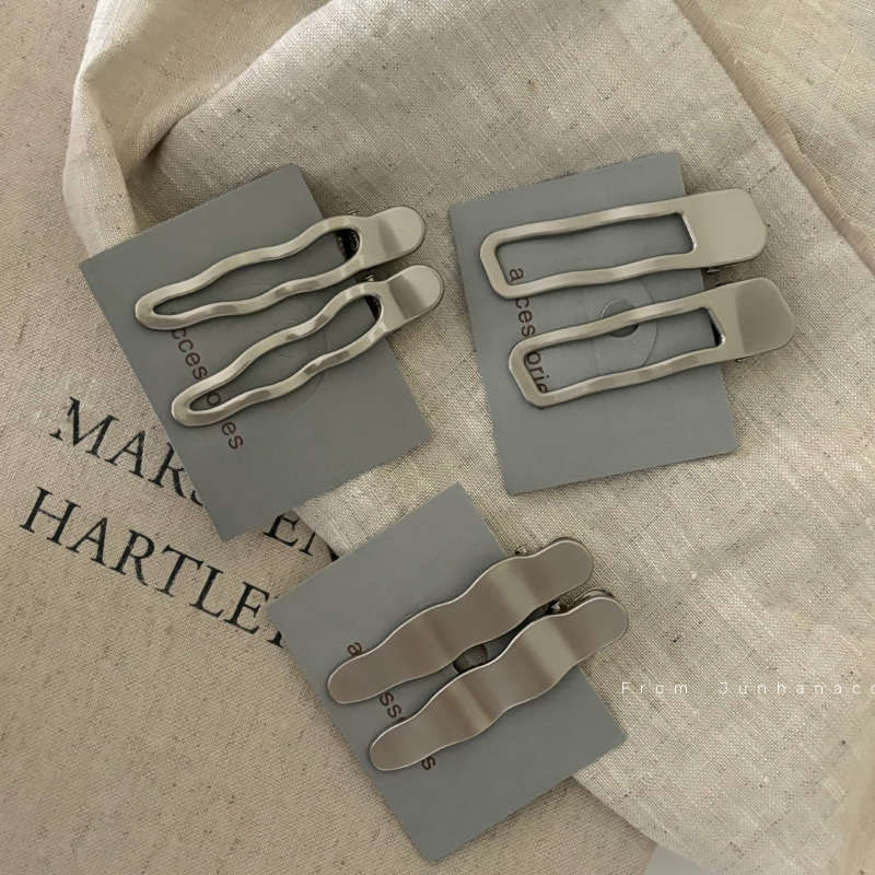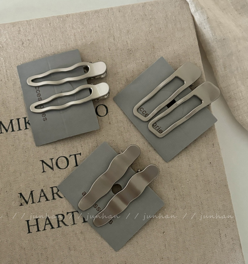 시원한 바람 실버 금속 웨이브 헤어핀 기하학적 라인 덕빌 클립 사이드 뱅 클립 헤드웨어