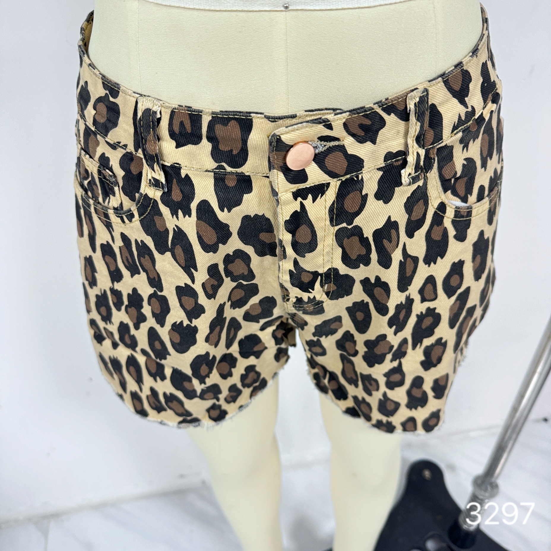 여성을위한 유럽과 미국의 여름 새로운 레트로 레오파드 무늬 모피 가장자리 높은 허리 데님 반바지스토어 가기