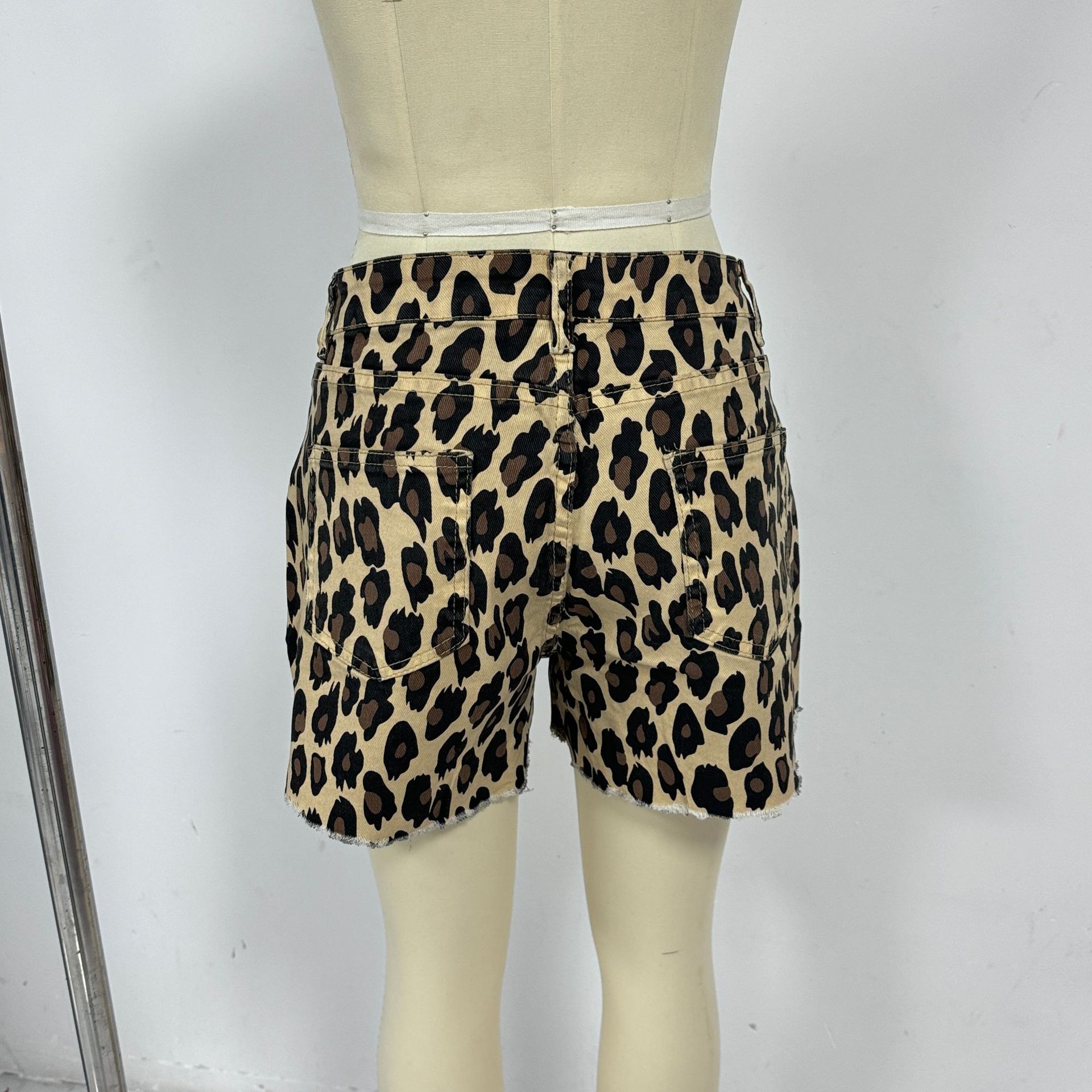여성을위한 유럽과 미국의 여름 새로운 레트로 레오파드 무늬 모피 가장자리 높은 허리 데님 반바지