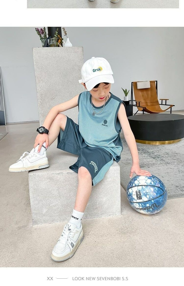 남학생 조끼 반바지 세트 여름 얇은 어린이 농구 옷 스포츠 아이들의 빠른 건조 옷 민소매 트렌디 메쉬 스타일스토어 가기