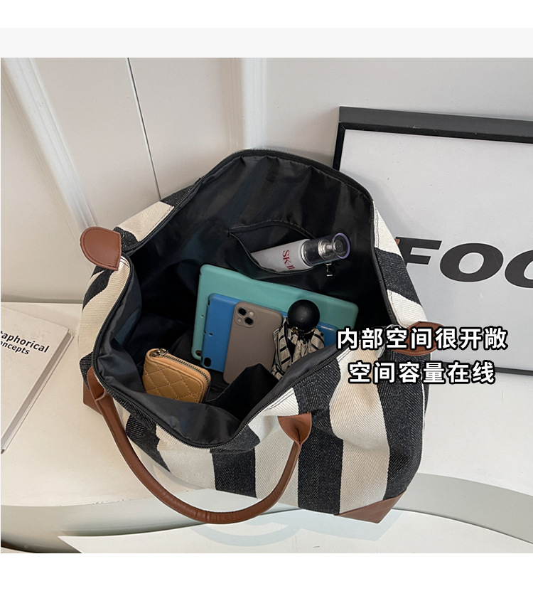 대용량 캔버스 가방 여성 줄무늬 어깨 가방 질감 서양식 한국 예술적 복고풍 쇼핑백 휴대용 대형 천 가방스토어 가기