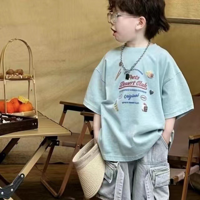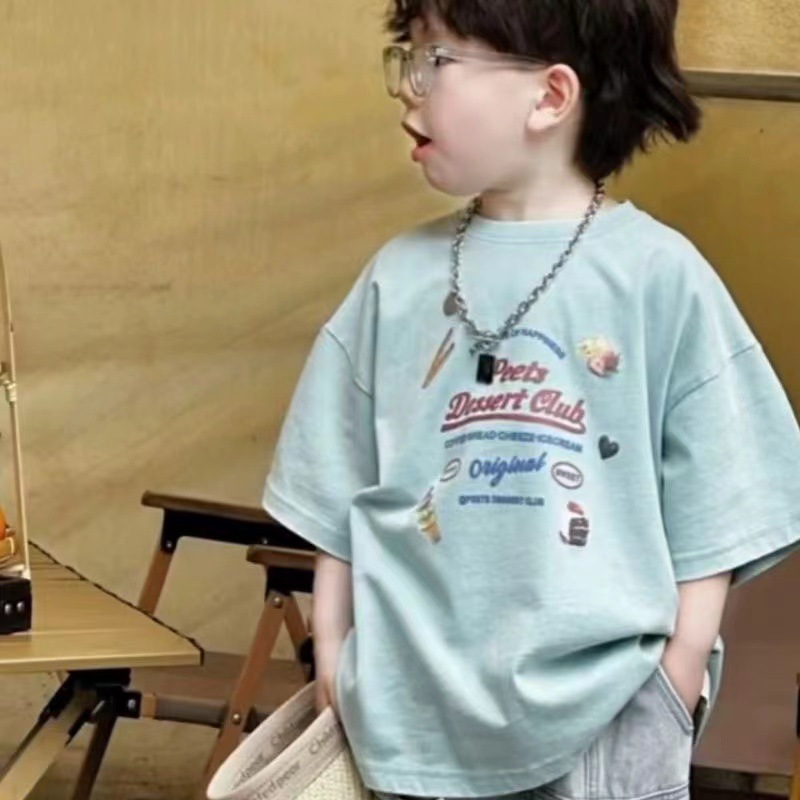 코튼 보이즈 2024 여름 새로운 밝은 흰색 티셔츠 소프트 핸섬 베이비 스트리트 프라이드 쿨 타이드 탑