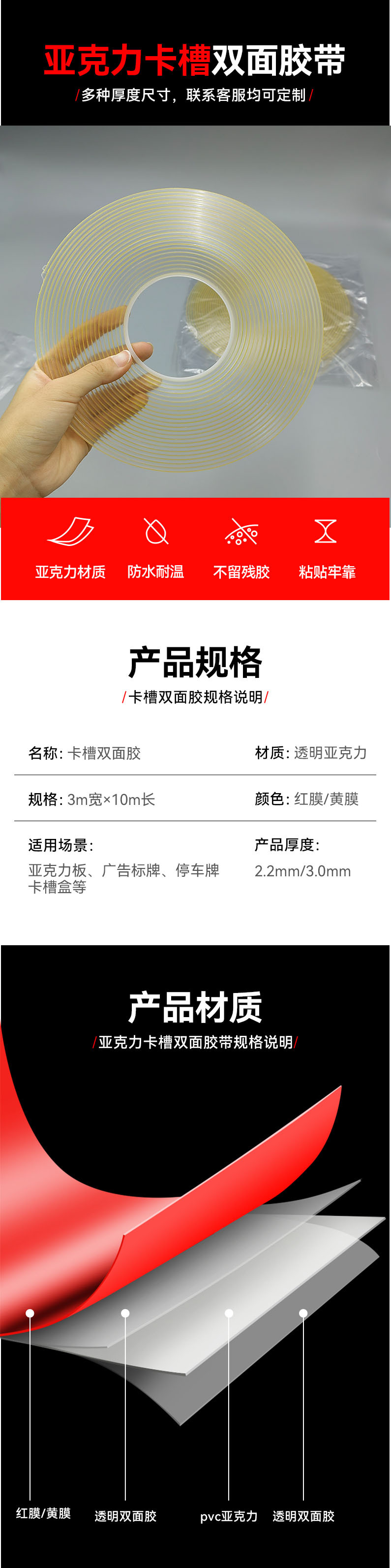 아크릴 카드 슬롯 투명 초강력 고점착 광고 상자 양면 테이프 하드 스트립 노란색 필름 테이프 고점착스토어 가기