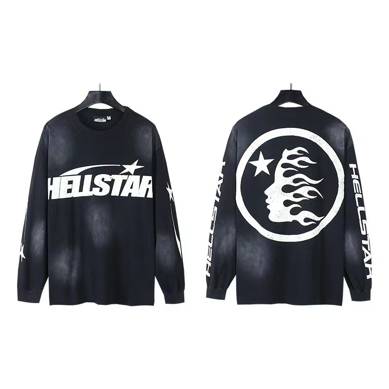Hellstar Hoodie 미국 국경 가을 옷 남성용 느슨한 하이 스트리트 여성용 긴팔 스웨트 셔츠 세탁 얇은 티셔츠