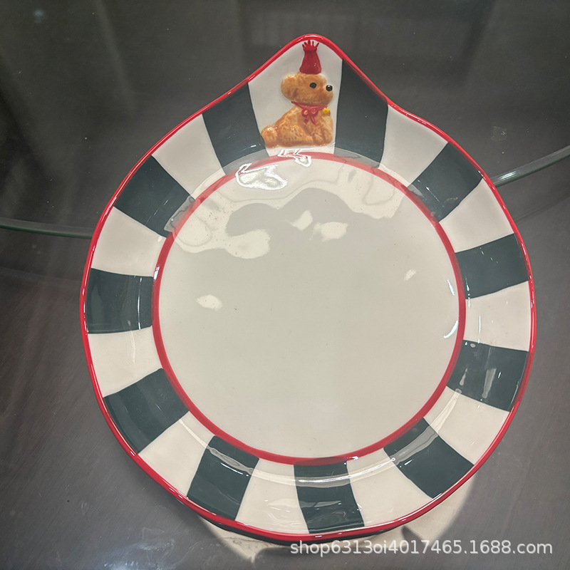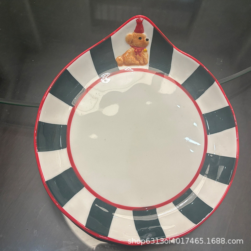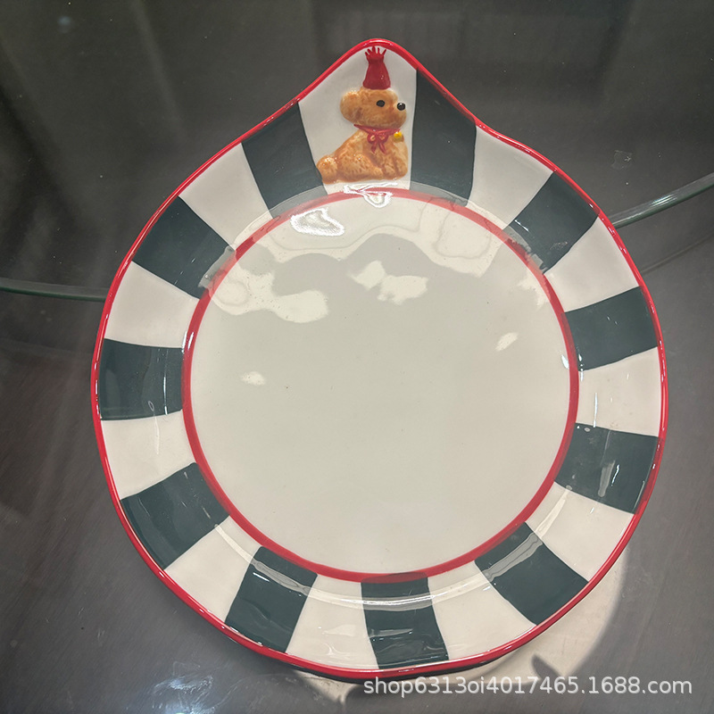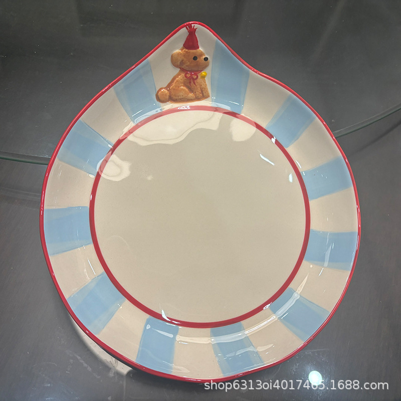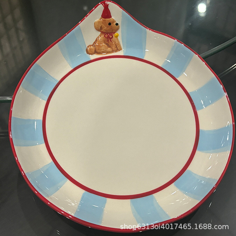 귀여운 생일 개 손으로 그린 세라믹 플레이트 가정용 접시 딥 플레이트 카페 디저트 케이크 플레이트 파가트의 깊은 접시