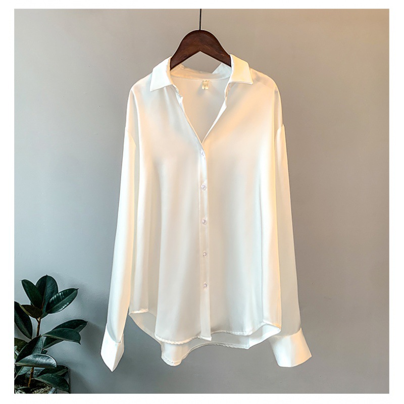 유럽과 미국의 플러스 사이즈 긴팔 새틴 셔츠 여성 디자인 센스 니쉬 봄과 여름 올 매치 드래핑 레트로 홍콩 스타일 셔츠 탑스토어 가기