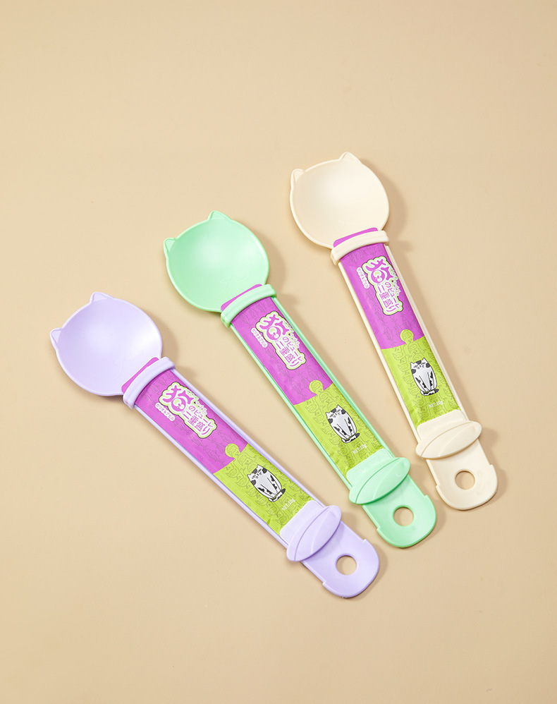 고양이 피더 고양이 스트립 짜기 유물 애완 동물 유체 간식 숟가락 고기 진흙 고양이 먹이 숟가락 긴 손잡이 숟가락