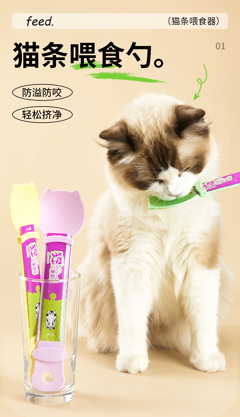 고양이 피더 고양이 스트립 짜기 유물 애완 동물 유체 간식 숟가락 고기 진흙 고양이 먹이 숟가락 긴 손잡이 숟가락스토어 가기