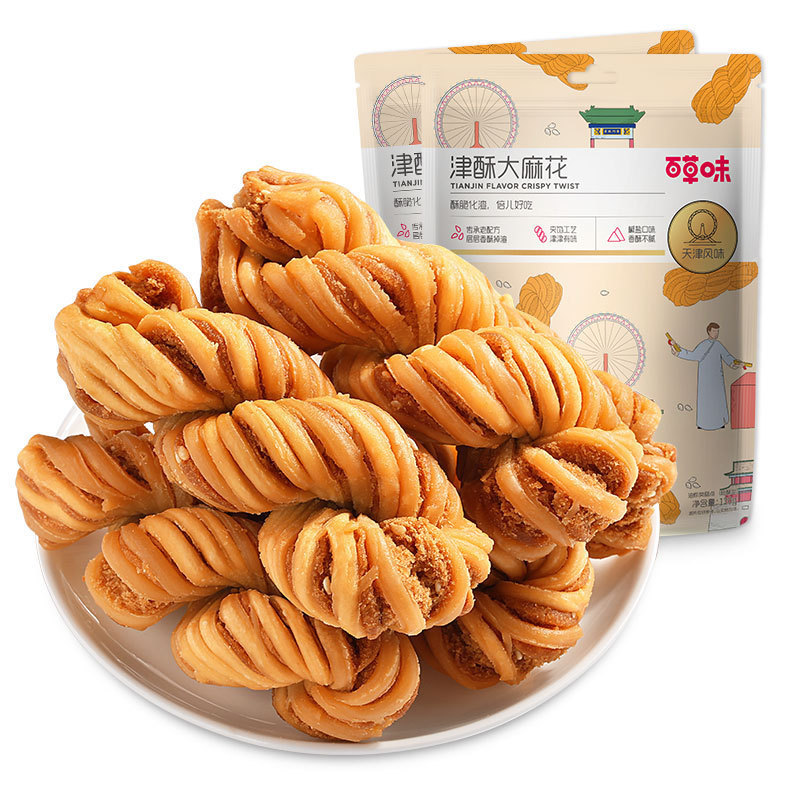 허벌 다진 바삭 바삭한 트위스트 120g 전통적인 패스트리 바삭 바삭한 간식 그물 단순히 대마 꽃을 갈망하는 빨간 간식스토어 가기