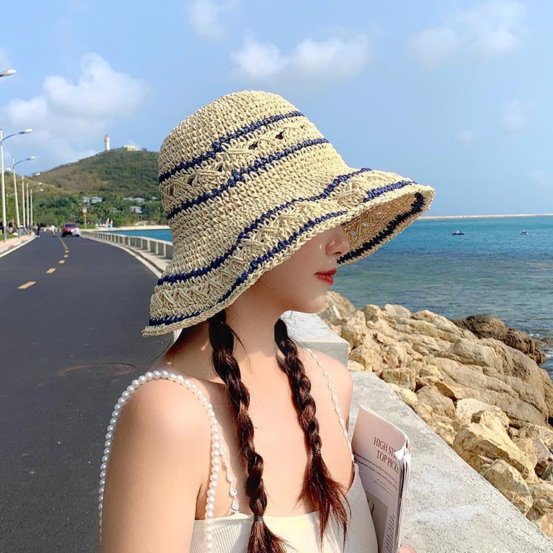 어부 모자 그물 레드 인 밀짚 모자 여성의 여름 접이식 차양 모자 해변 휴가 선 스크린 모자 밀짚스토어 가기