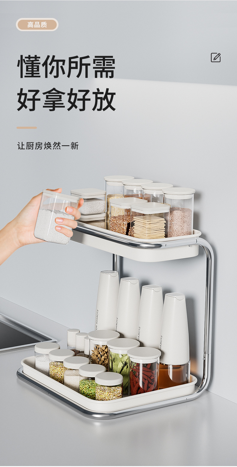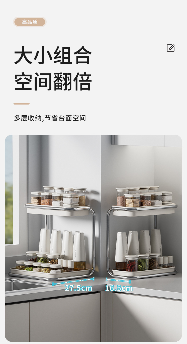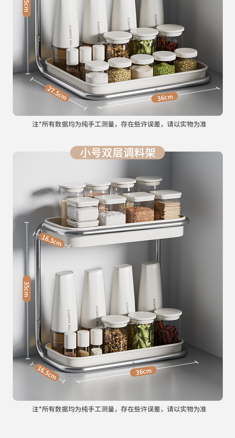 크림 스타일 주방 조미료 보관 랙 카운터 탑 코너 회전 더블 레이어 조미료 보관 양념 랙