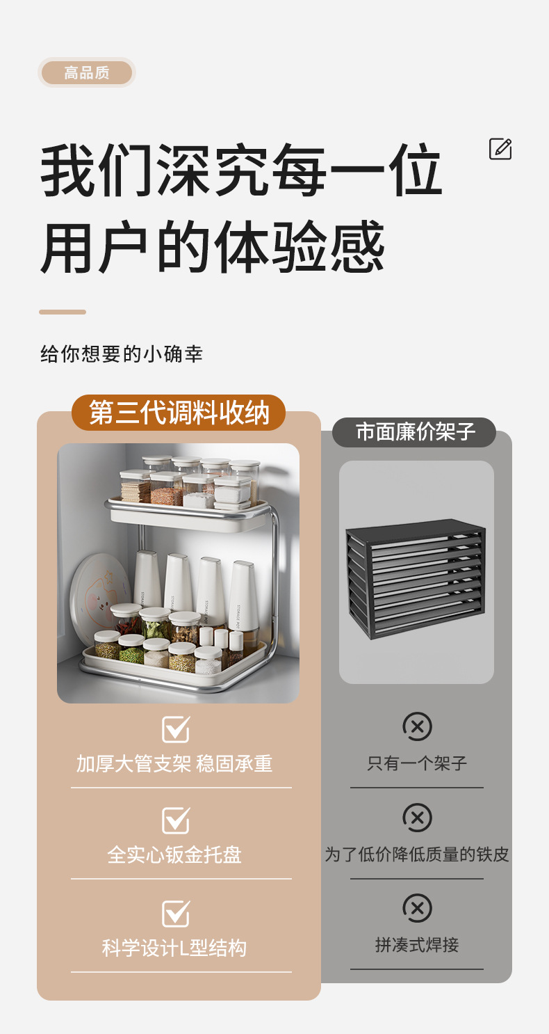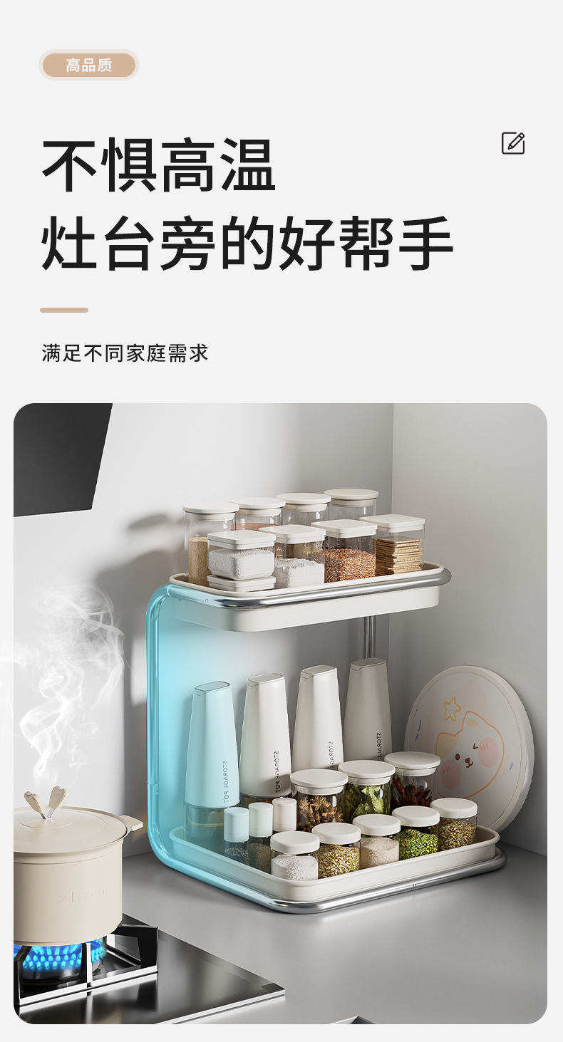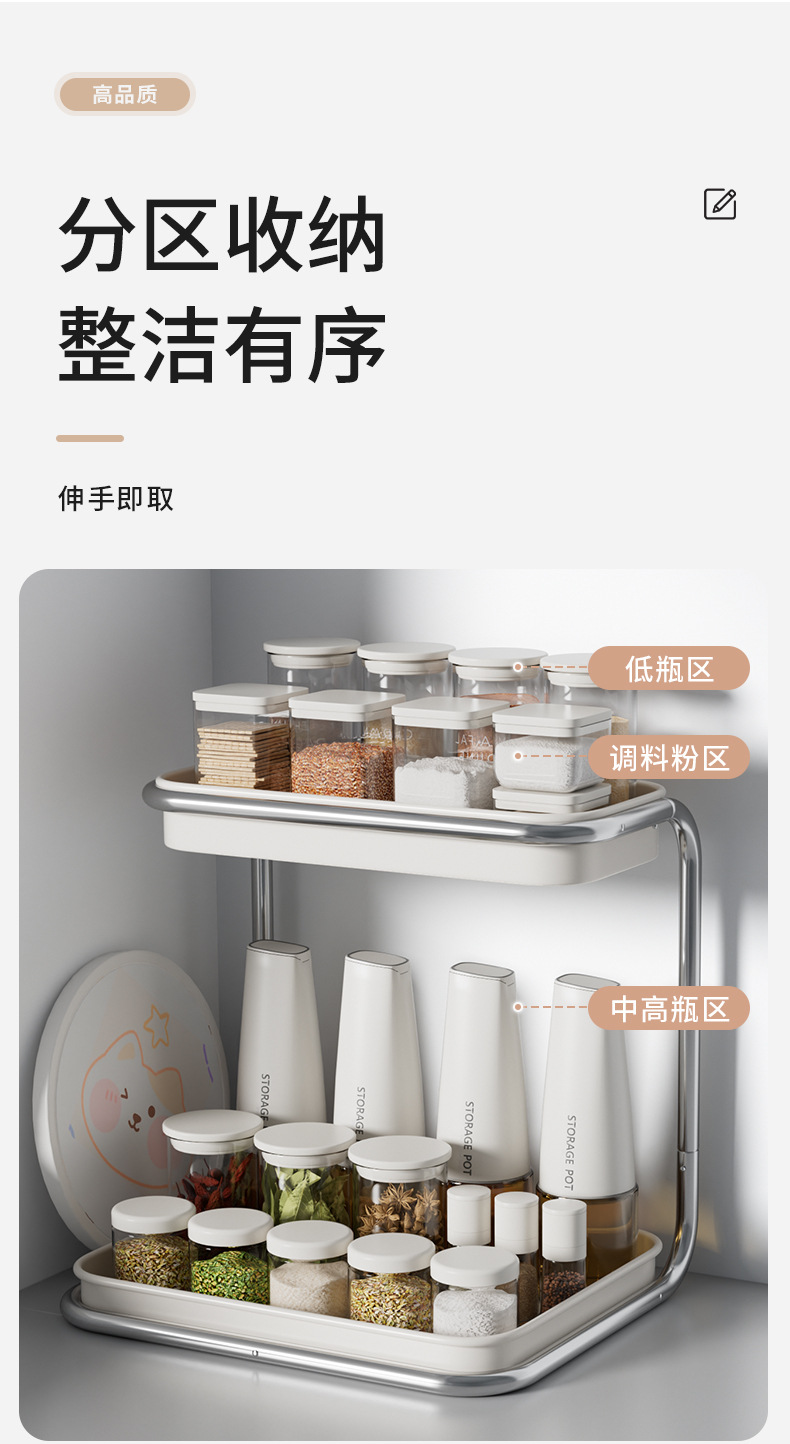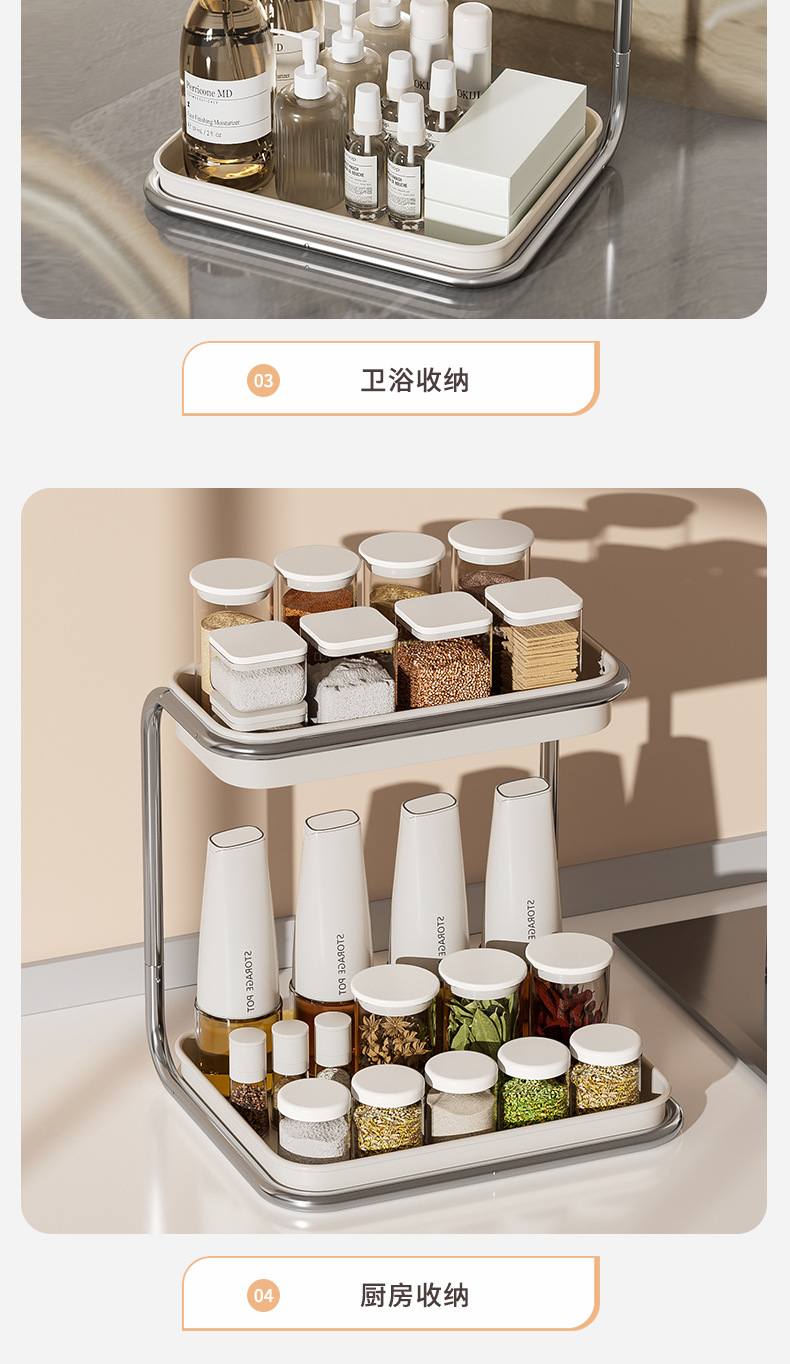 크림 스타일 주방 조미료 보관 랙 카운터 탑 코너 회전 더블 레이어 조미료 보관 양념 랙