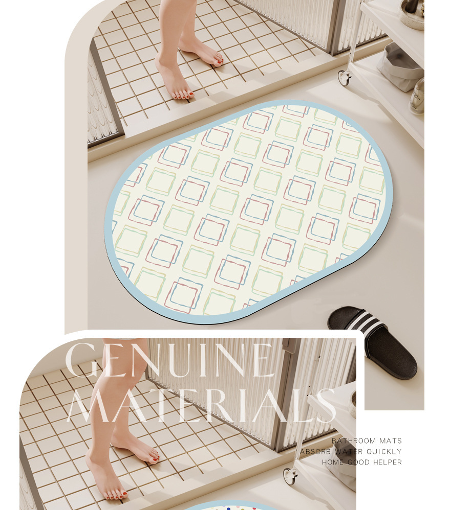 작은 신선한 Diatom 진흙 흡수성 바닥 매트 욕실 미끄럼 방지 빠른 건조 발 매트 가정용 도어 매트 관리