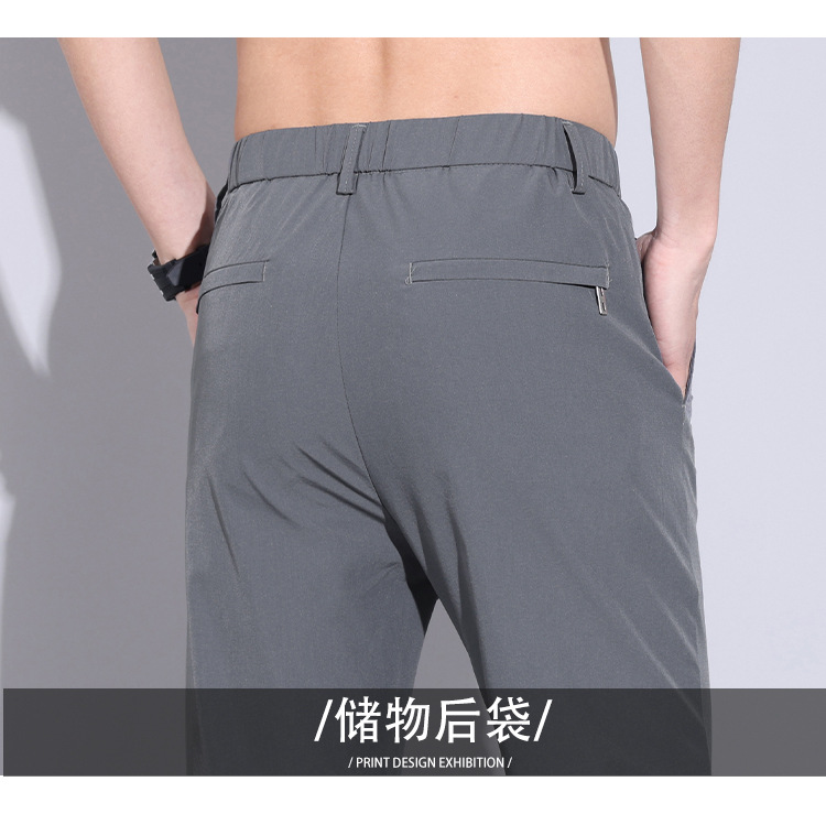 秋季厚款冰丝休闲裤男士时尚韩版透气直筒长裤潮牌速干商务小西裤