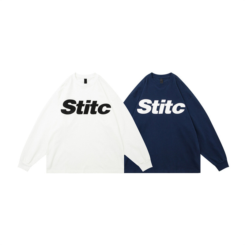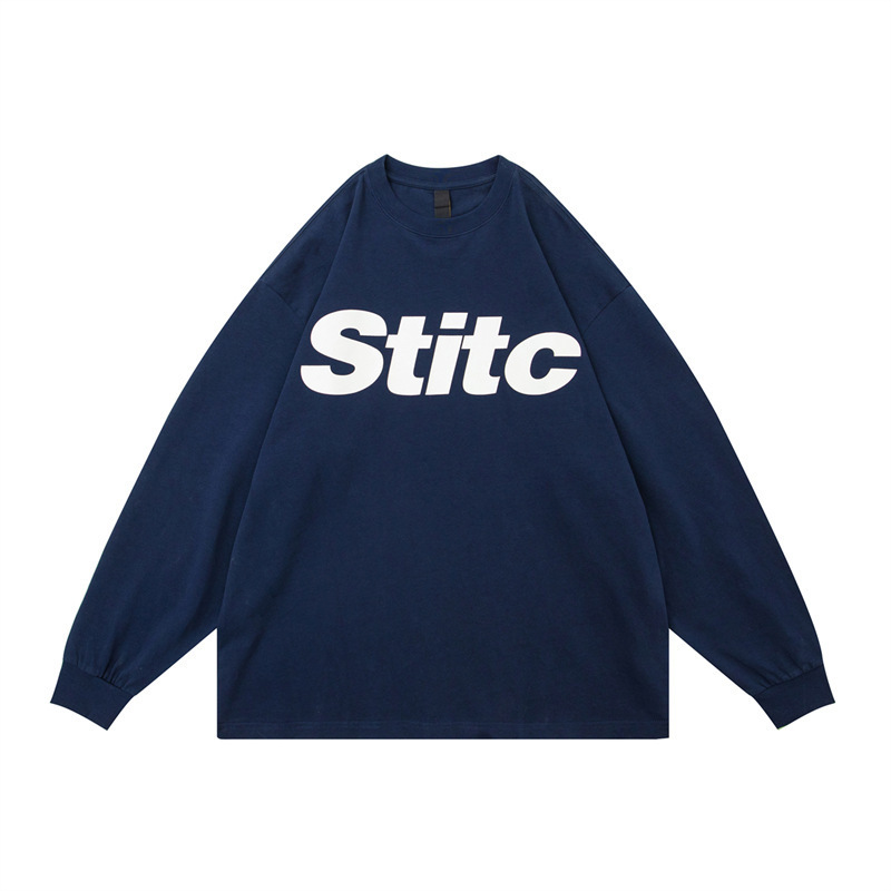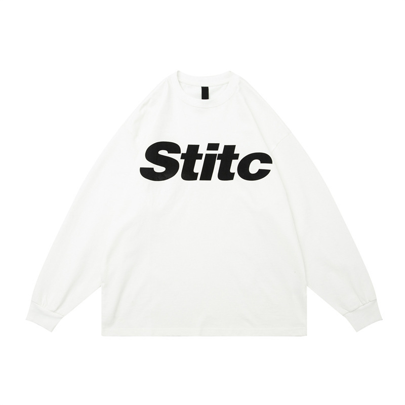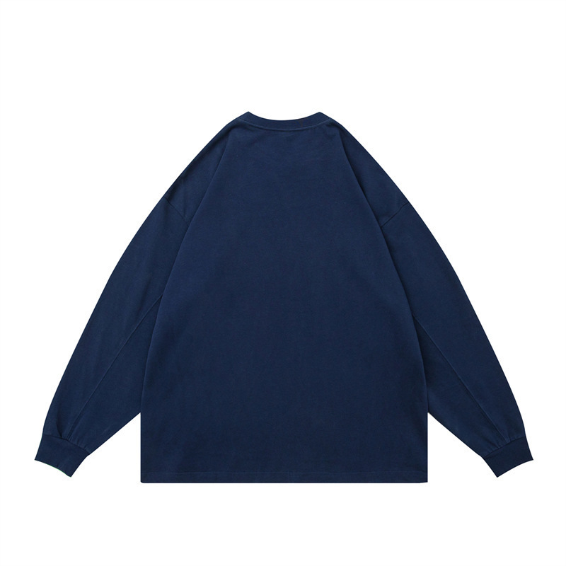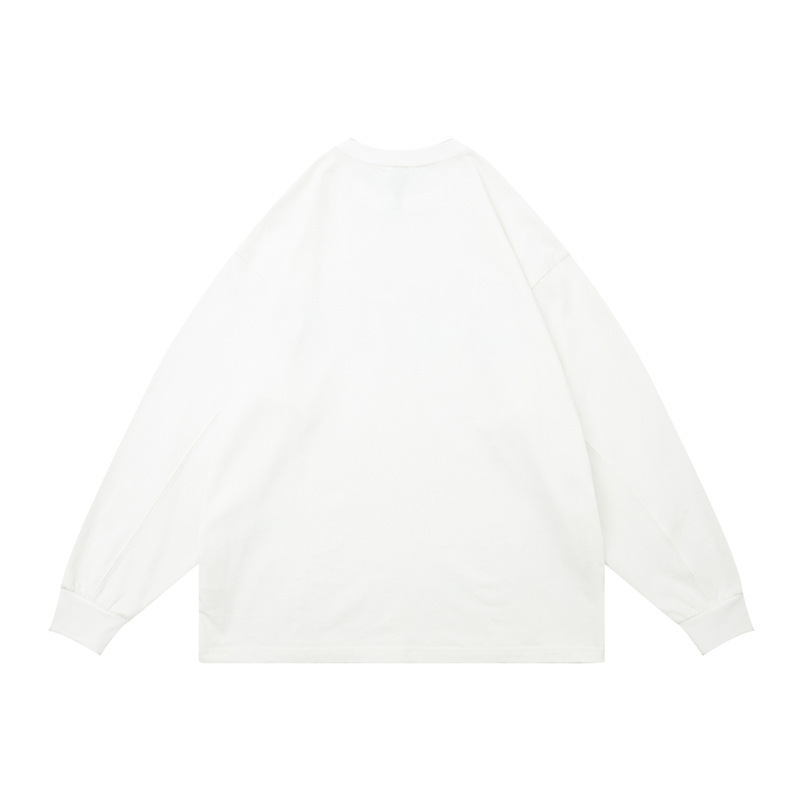 구 또한 남성 일본 패션 브랜드 2024 가을 새로운 300g 무거운 긴 소매 티셔츠 영어 인쇄베이스 셔츠스토어 가기