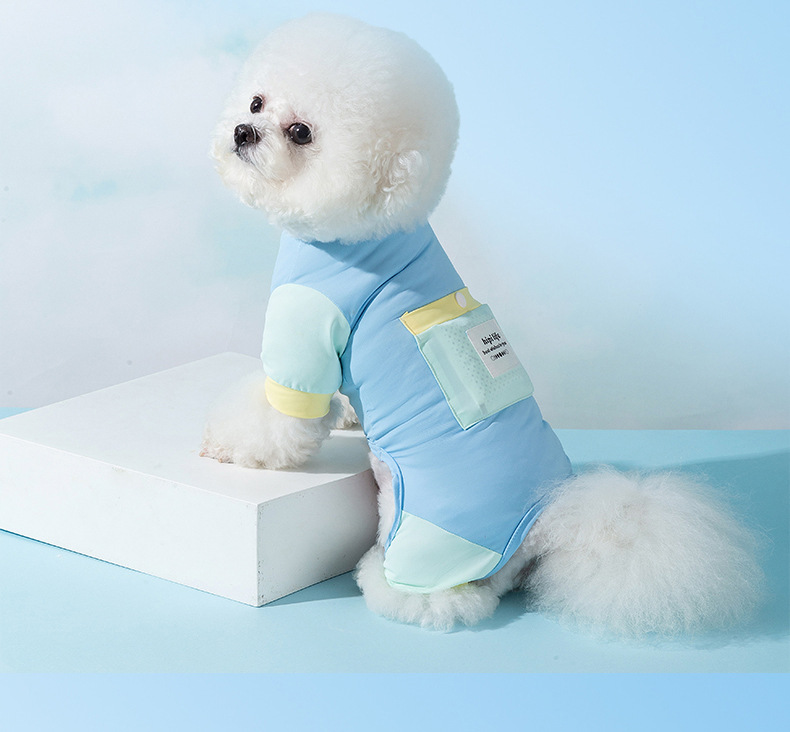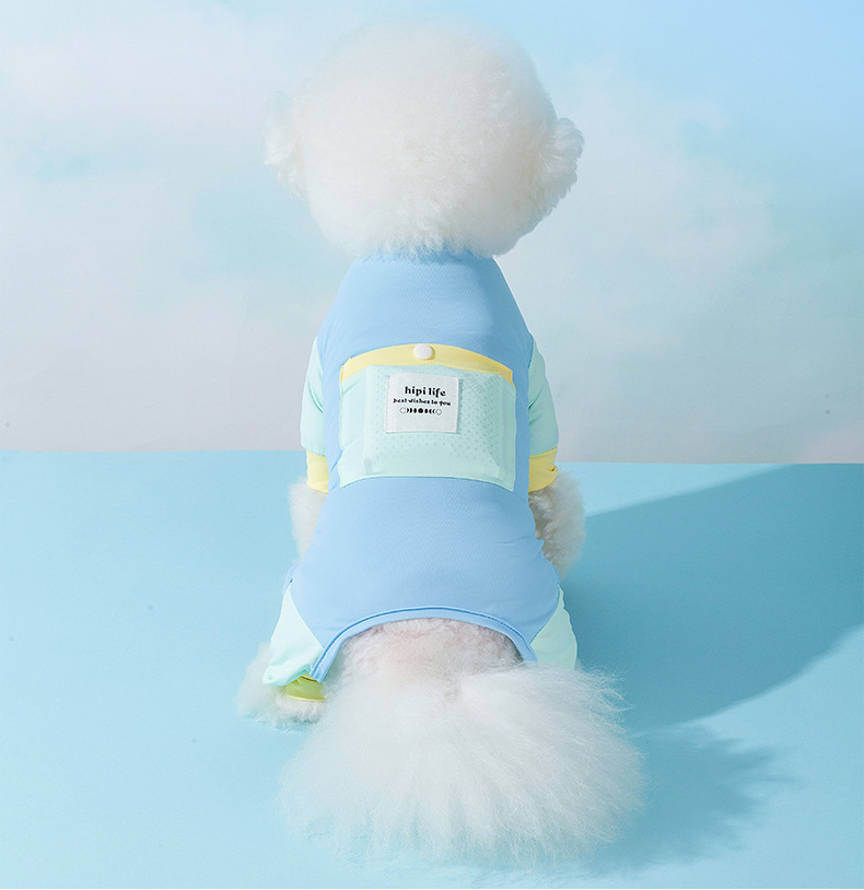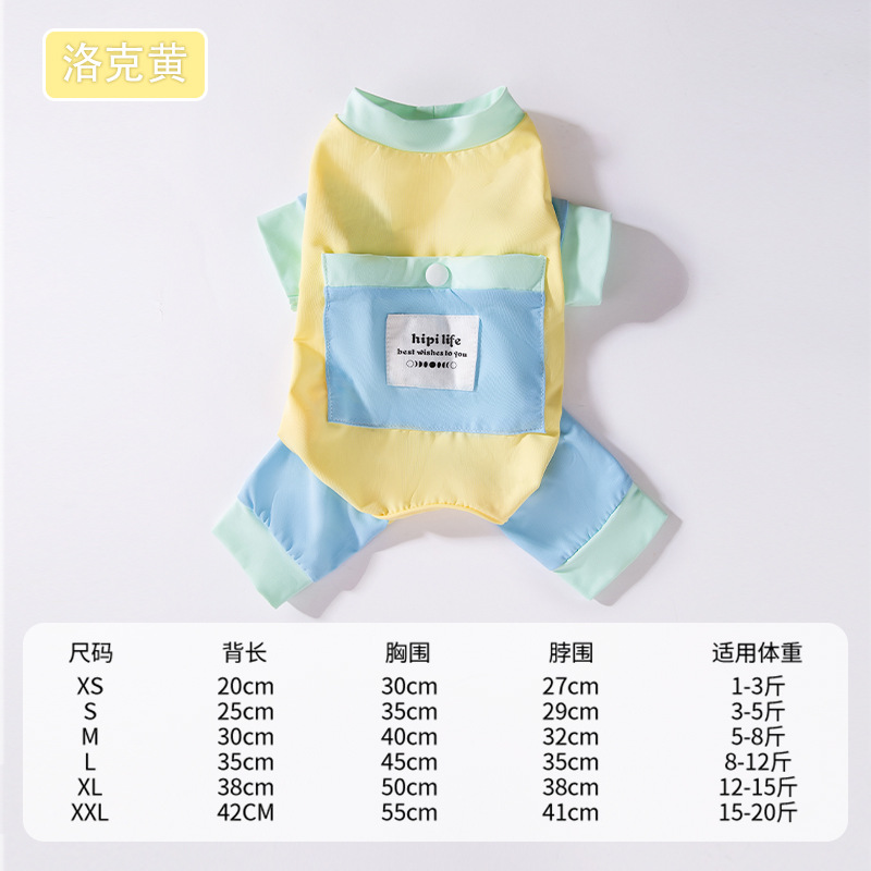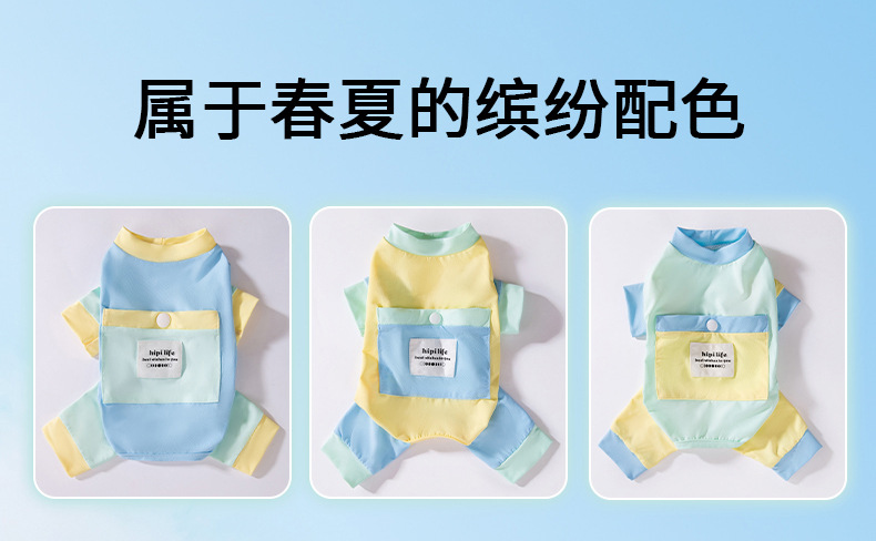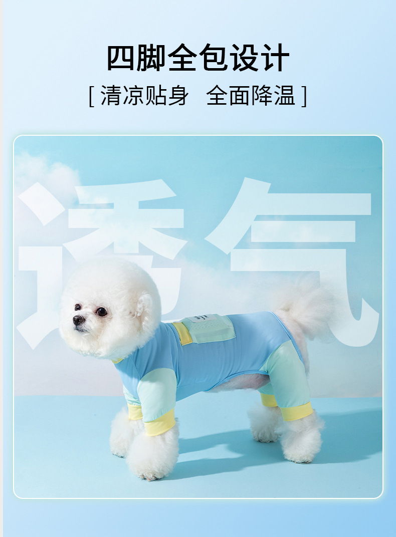 여름 개 외출 선 스크린 냉각 색상 일치 네 다리 선 스크린 세트 중소 개 고양이 냉각 애완 동물 개 옷