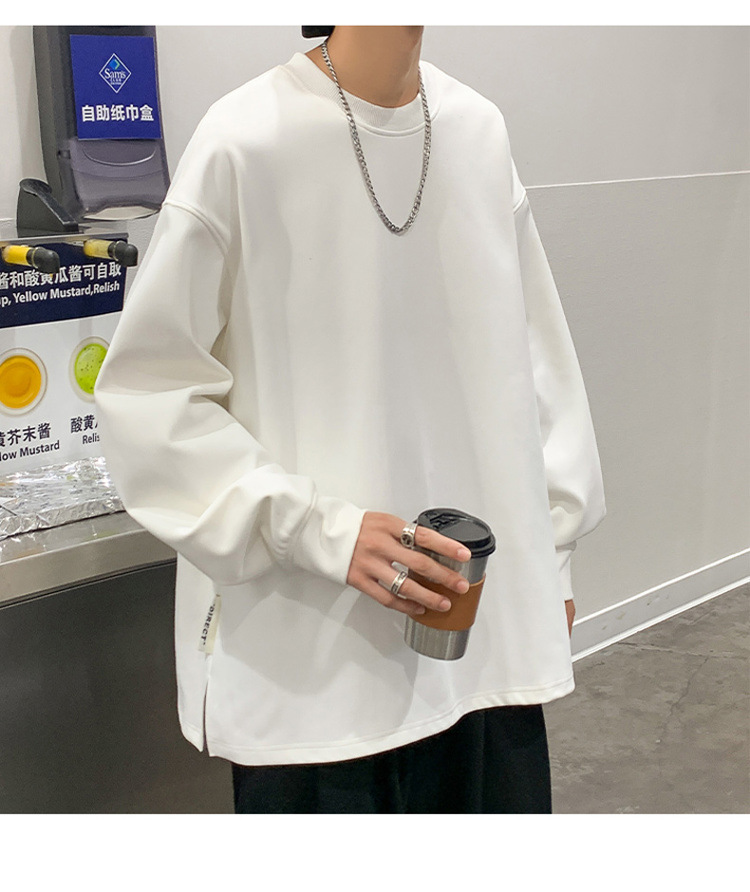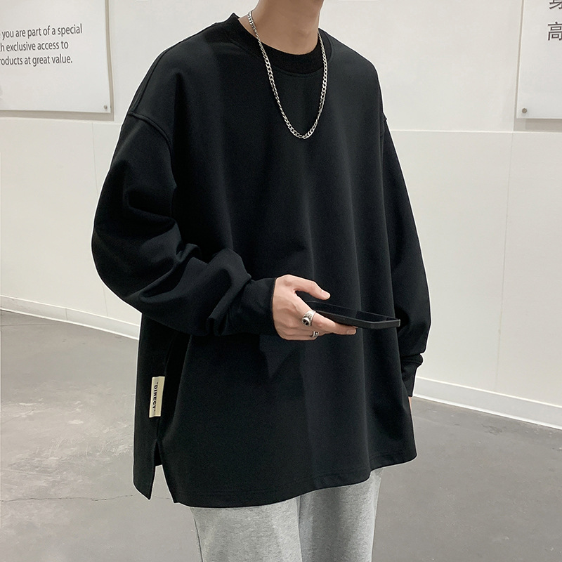 긴 소매 티셔츠 남자의 봄과 가을 단색 유행 브랜드 여름 얇은 느슨한 캐주얼 스웨터 내베이스 셔츠 탑 옷스토어 가기