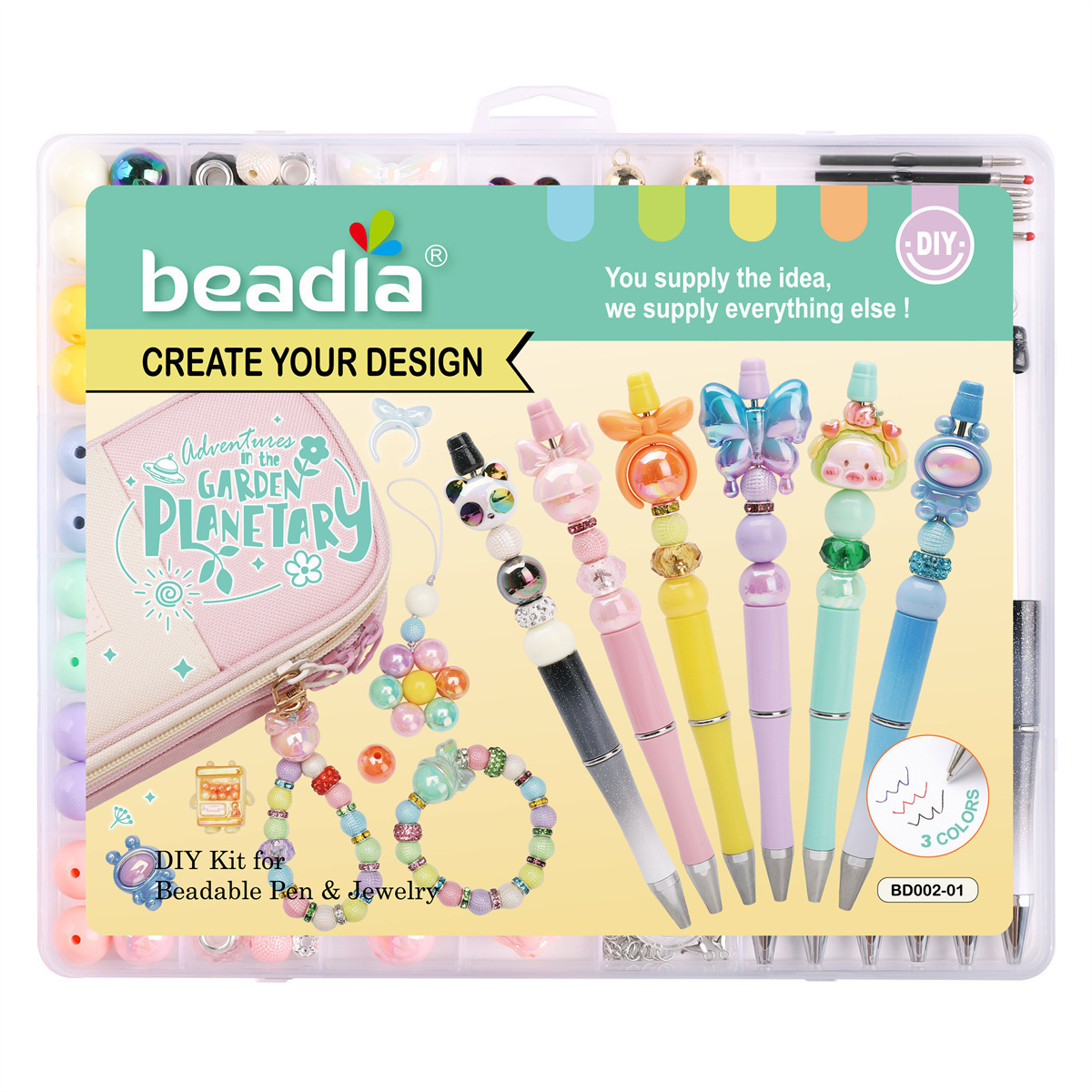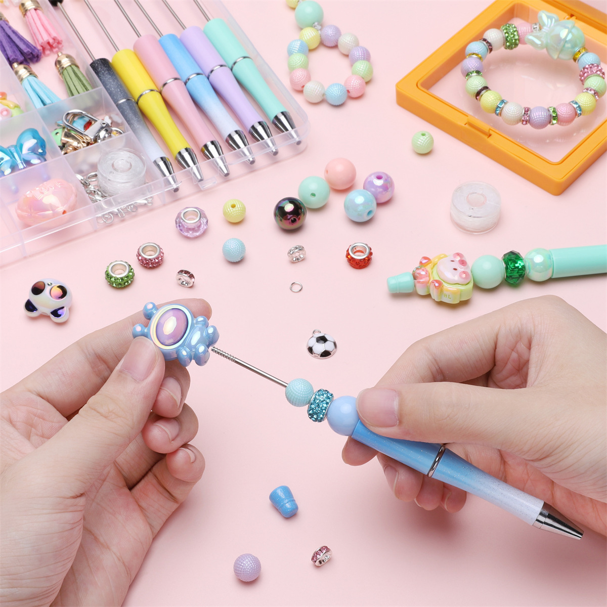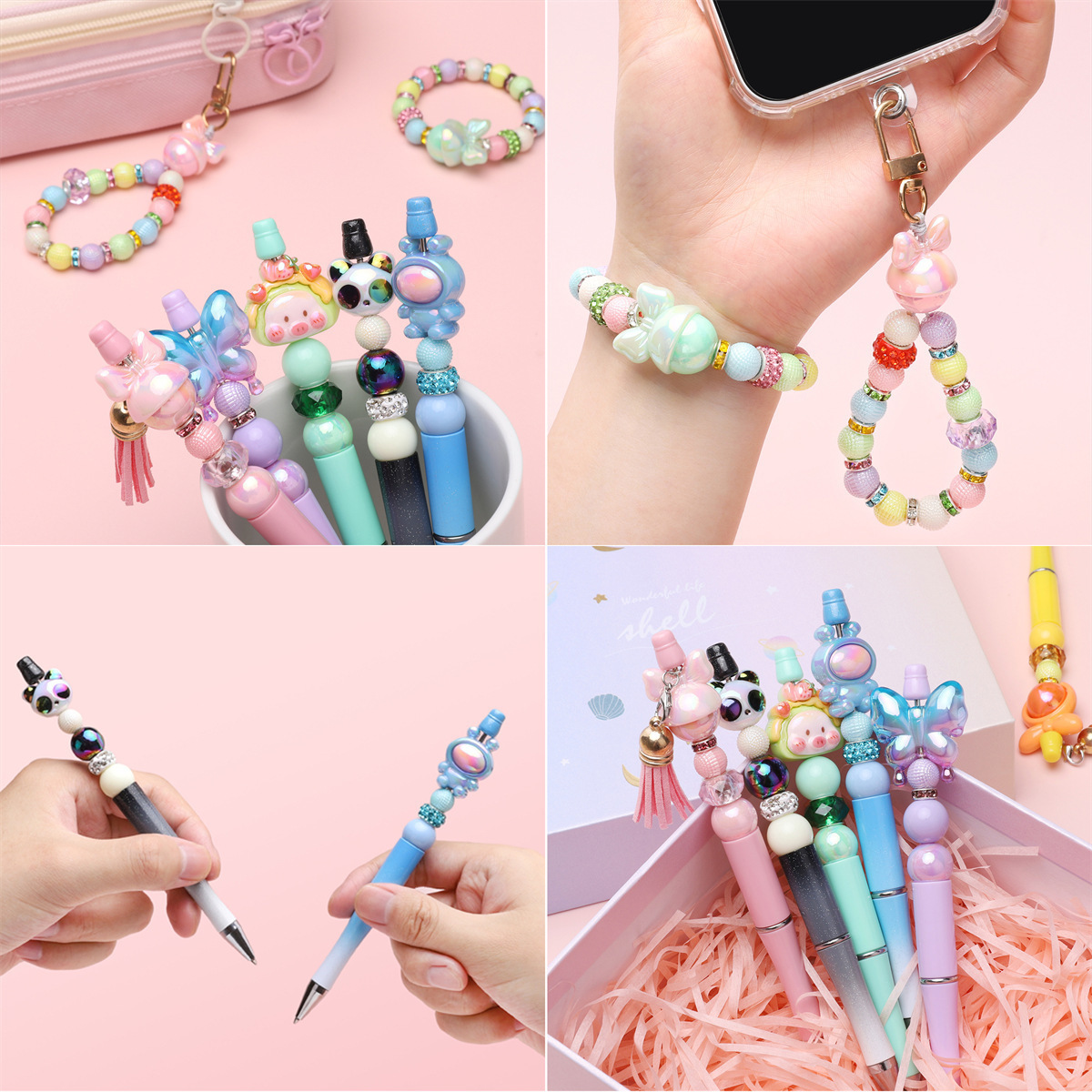 행성 정원 모험 DIY 구슬 턴어라운드 펜 세트 상자 창조적 인 작은 선물 팔찌 휴대 전화 체인 보석 자료