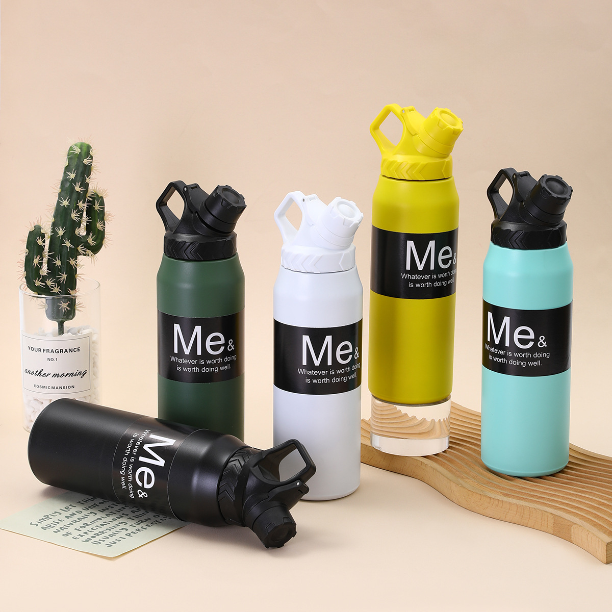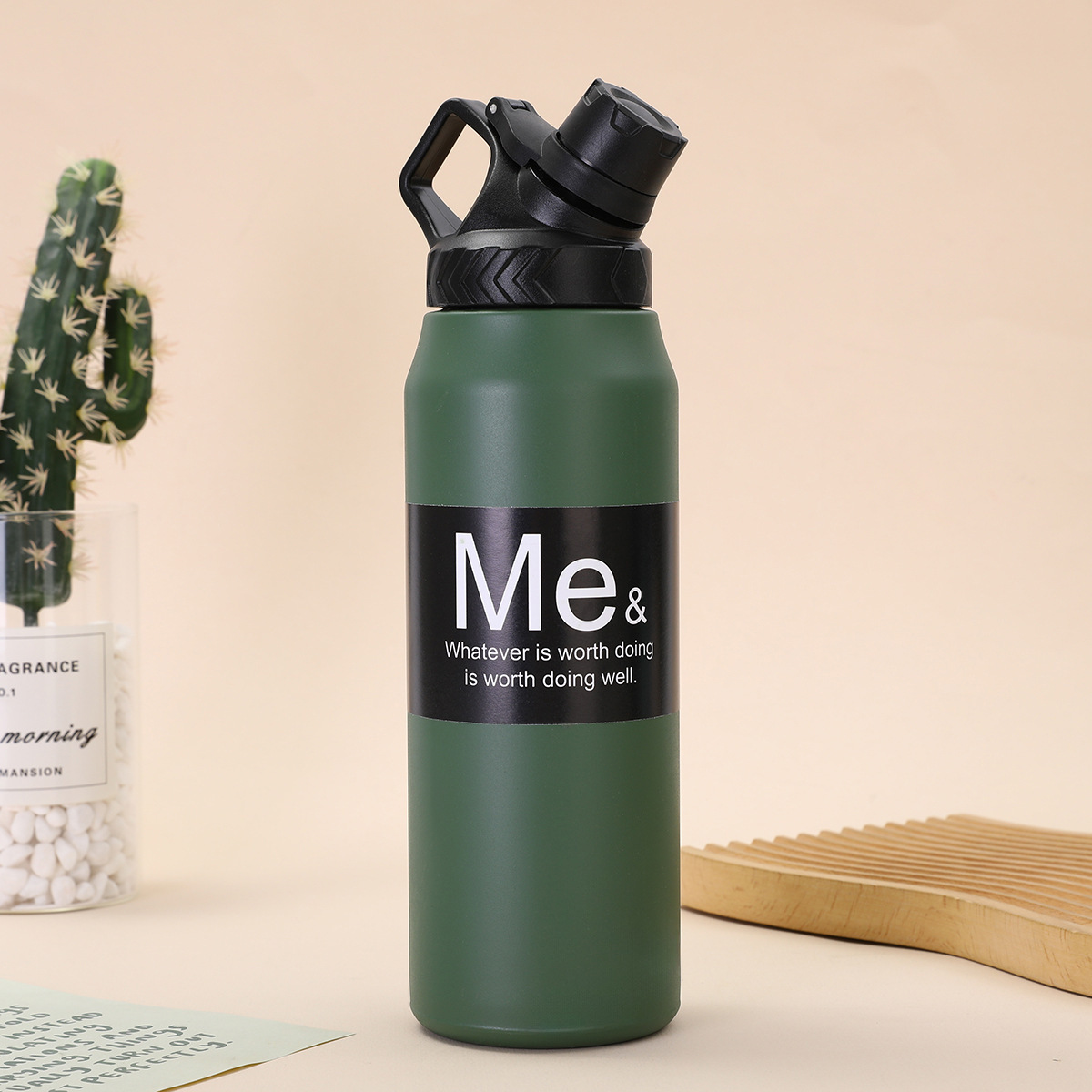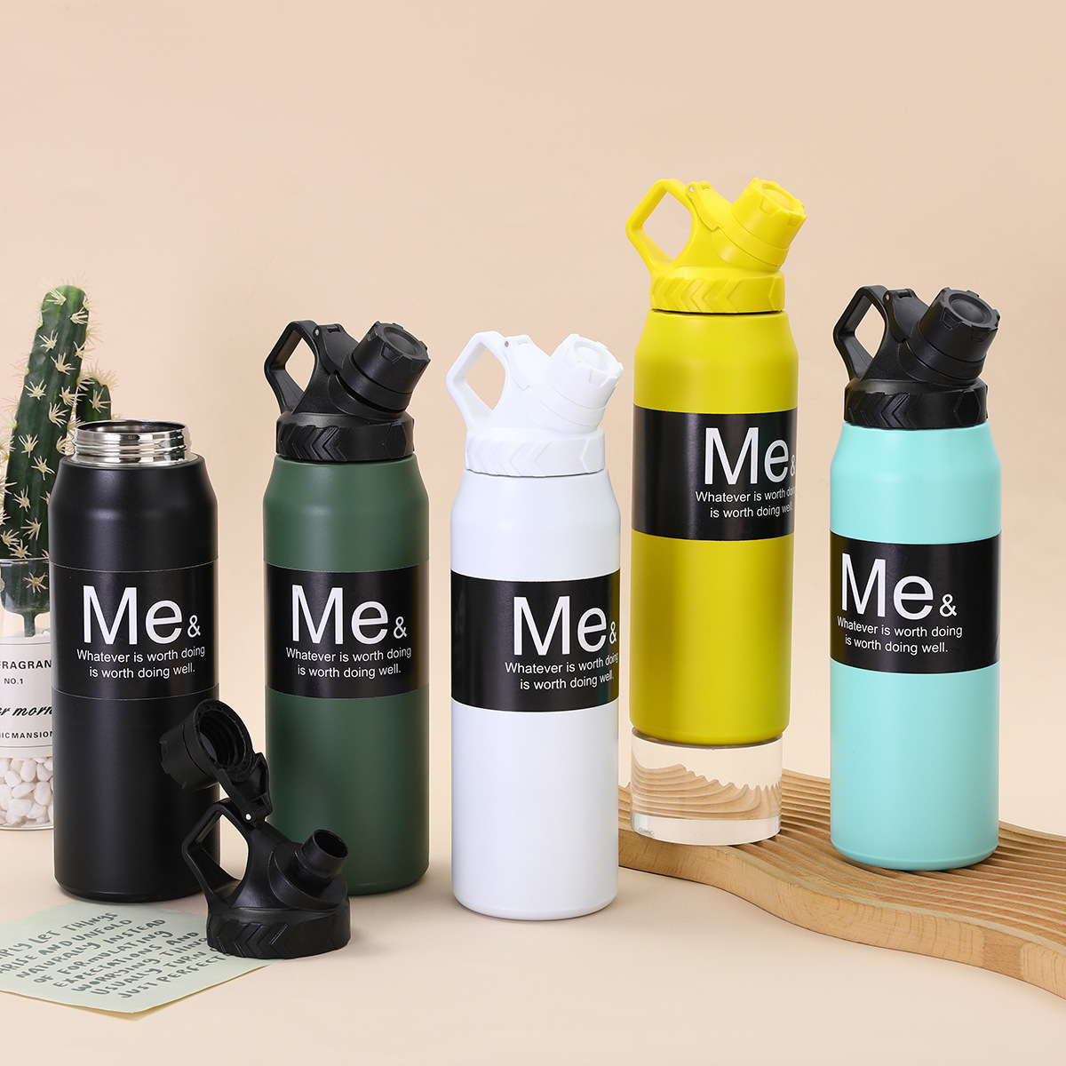 국경 비뚤어진 입 공간 냄비 단색 대용량 스포츠 주전자 등산 휴대용 304 스테인레스 스틸 보온병 컵