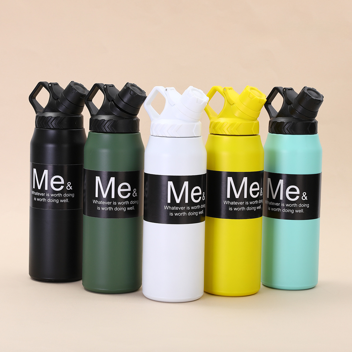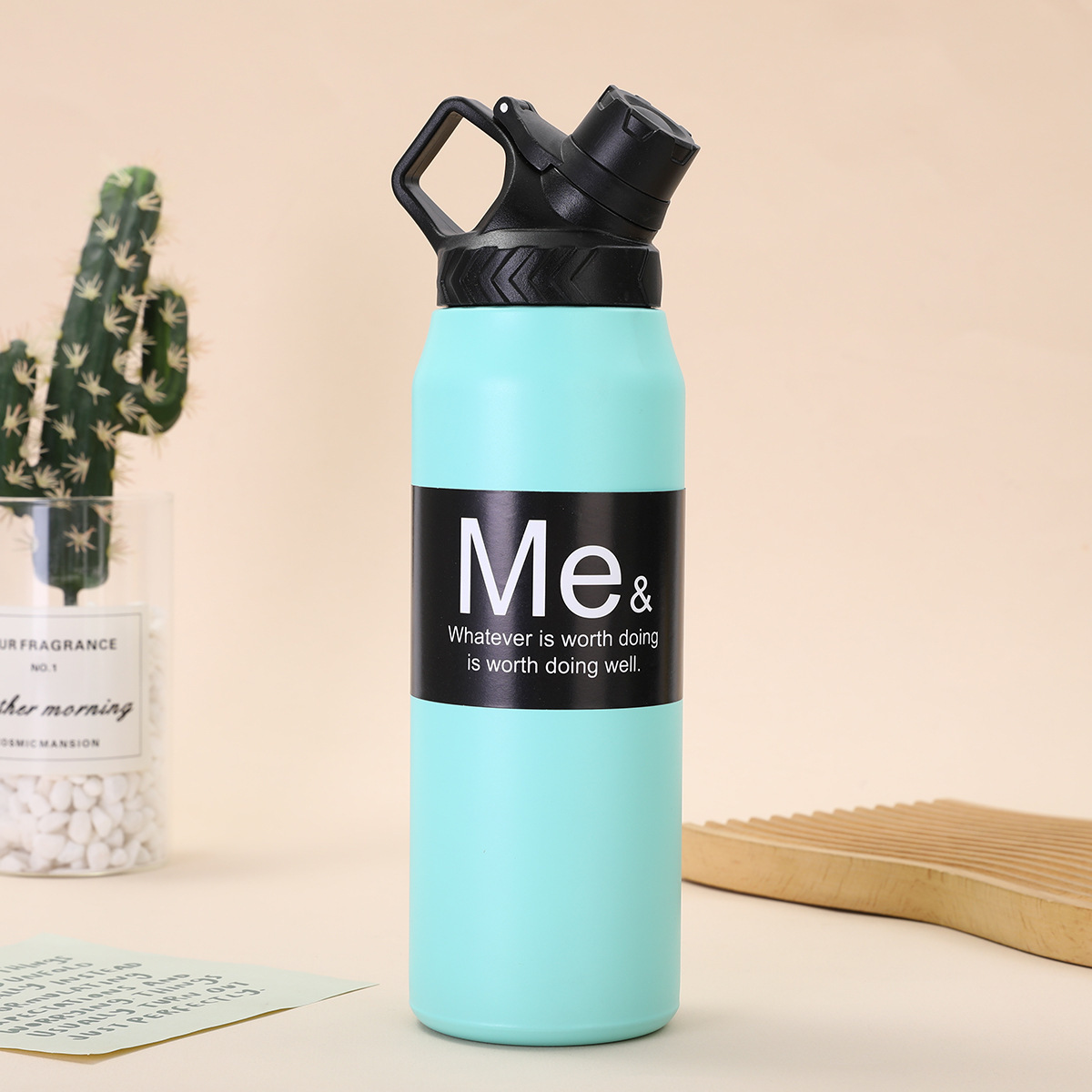 국경 비뚤어진 입 공간 냄비 단색 대용량 스포츠 주전자 등산 휴대용 304 스테인레스 스틸 보온병 컵스토어 가기