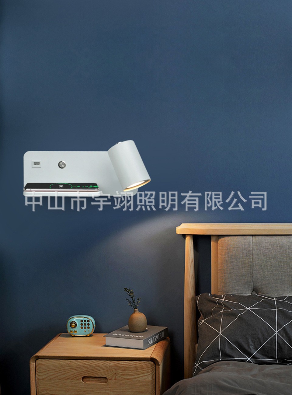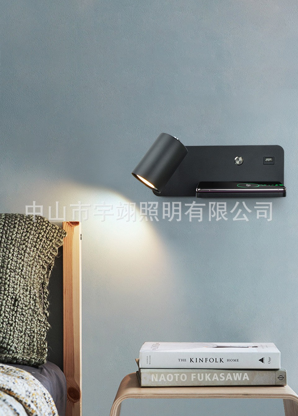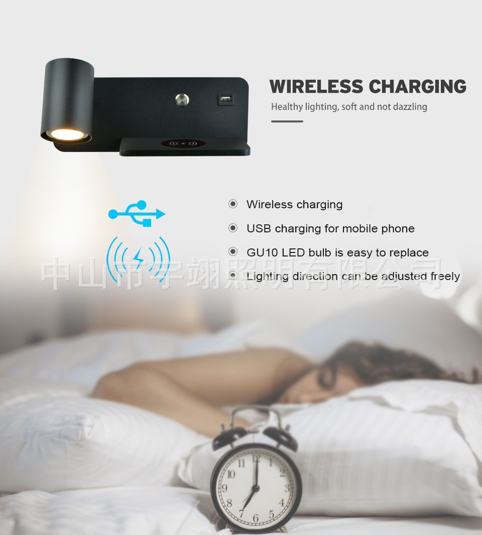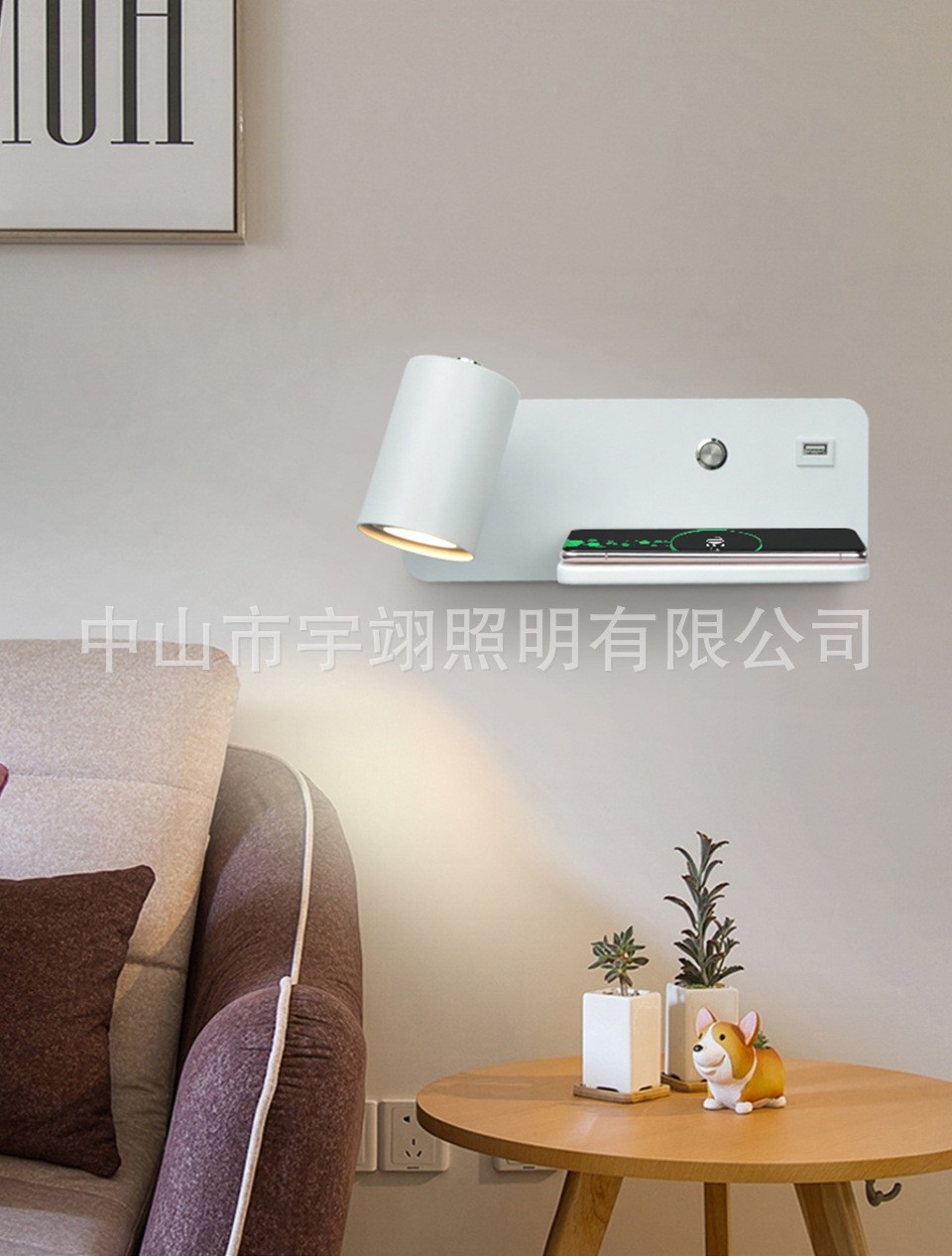 현대 미니멀 한 벽 램프 USB 인터페이스 무선 휴대 전화 충전 GU10 전구 거실 램프 침실 침대 옆 램프