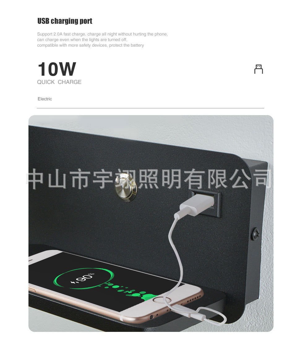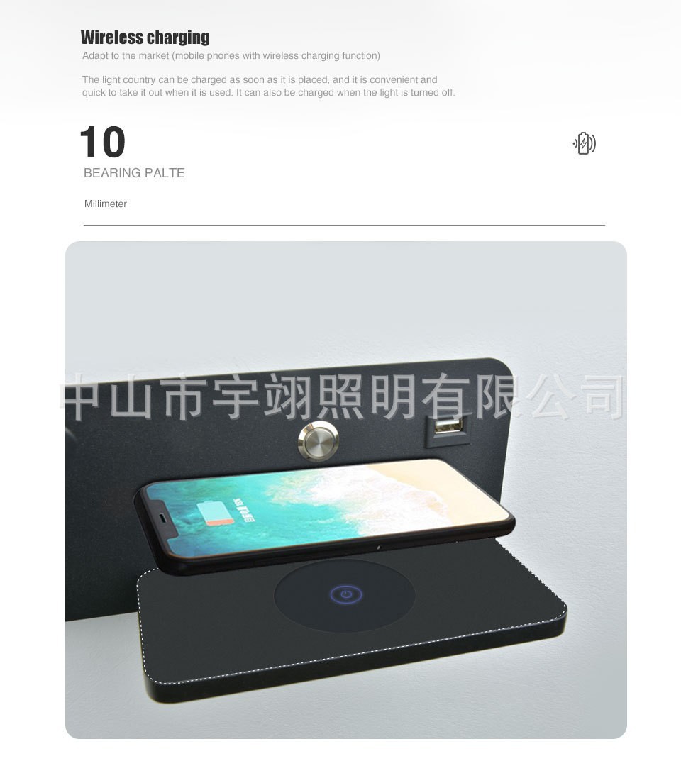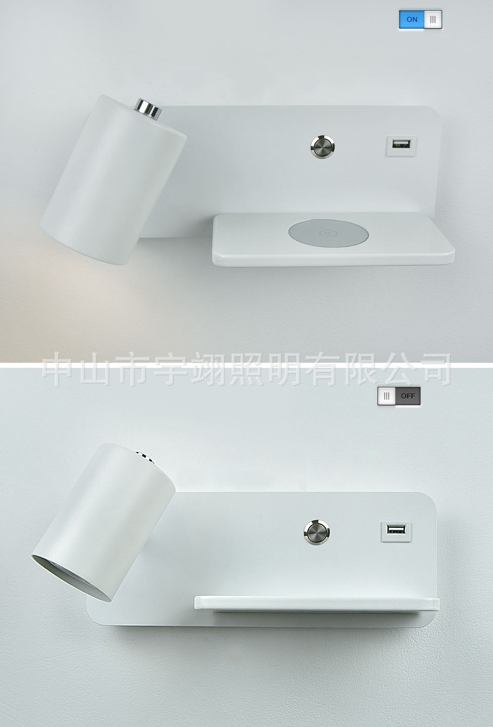 현대 미니멀 한 벽 램프 USB 인터페이스 무선 휴대 전화 충전 GU10 전구 거실 램프 침실 침대 옆 램프