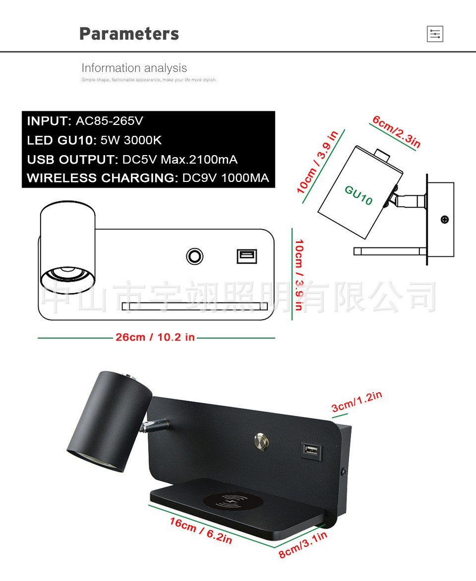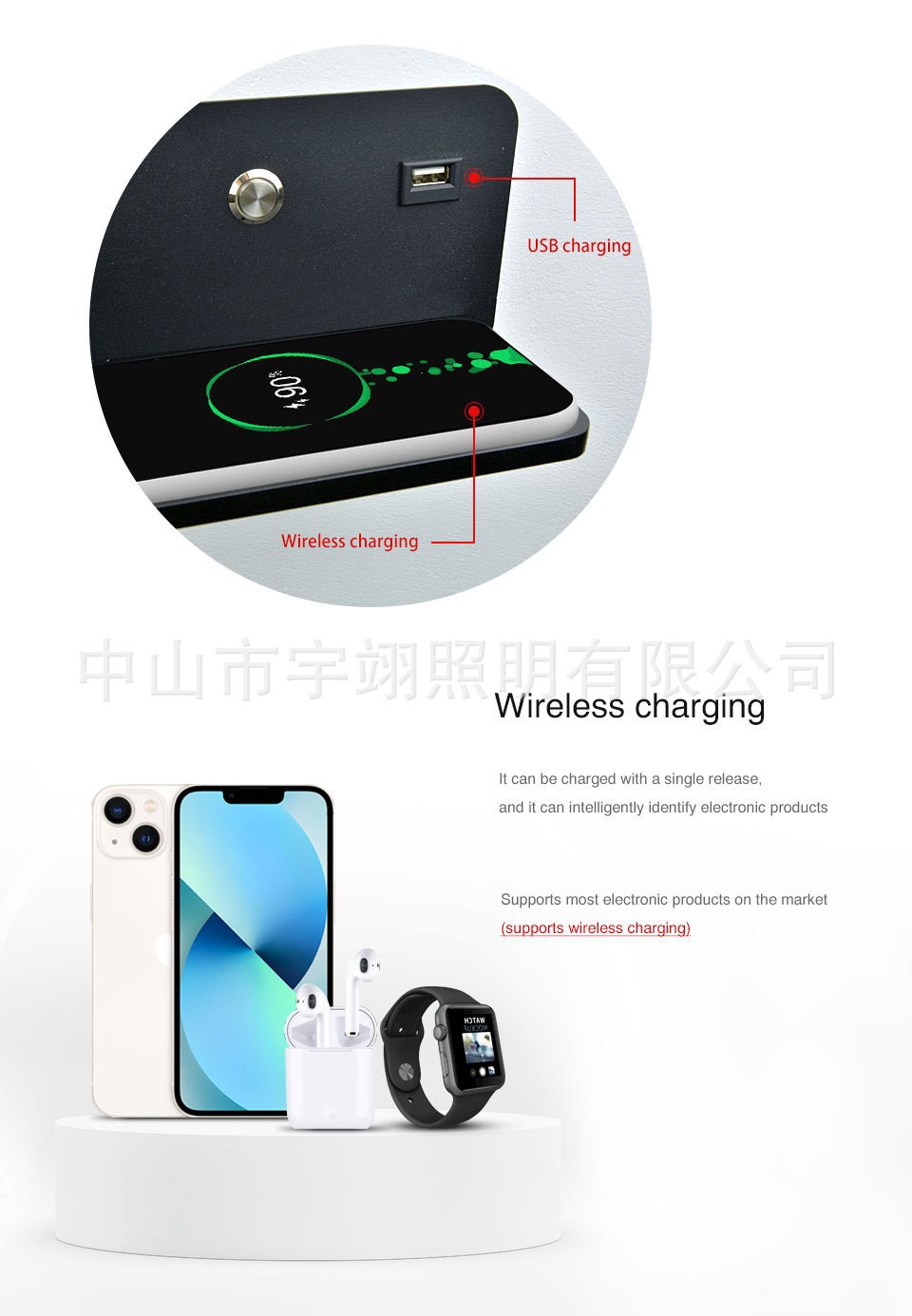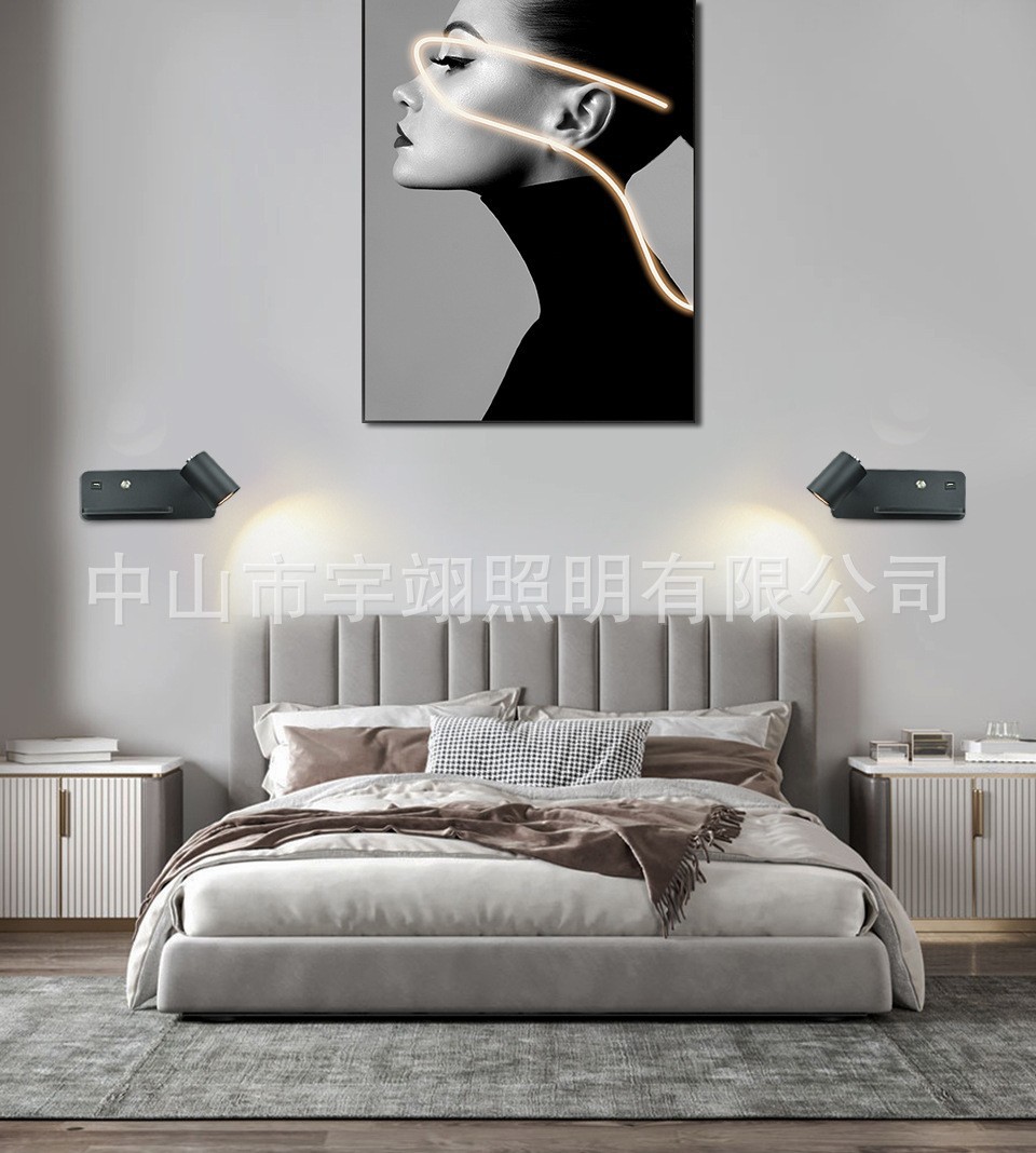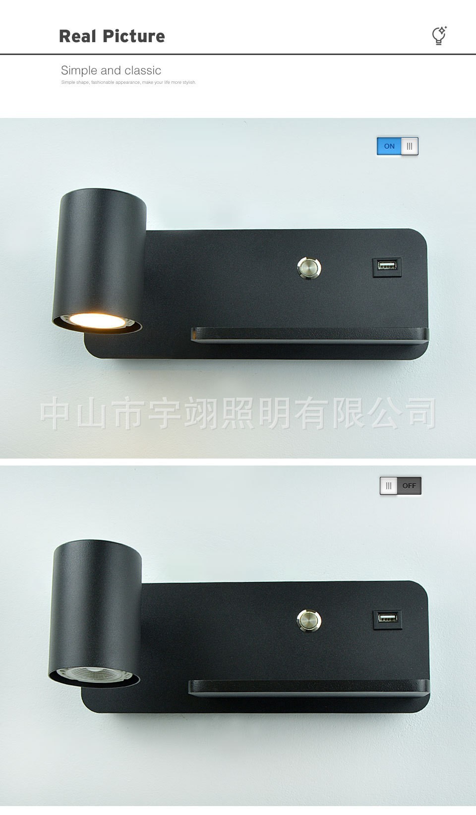현대 미니멀 한 벽 램프 USB 인터페이스 무선 휴대 전화 충전 GU10 전구 거실 램프 침실 침대 옆 램프