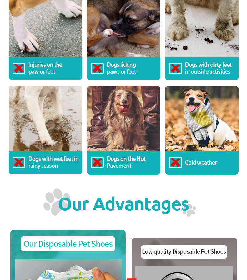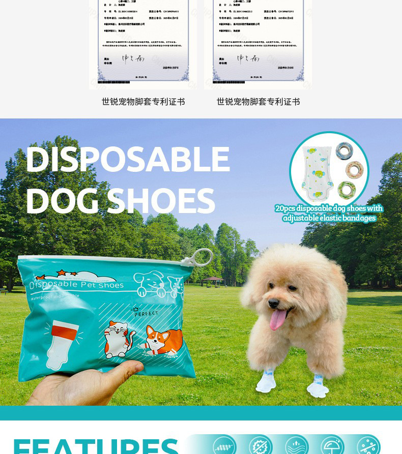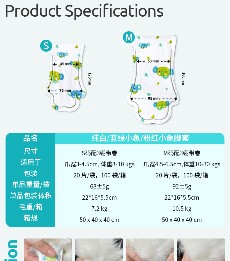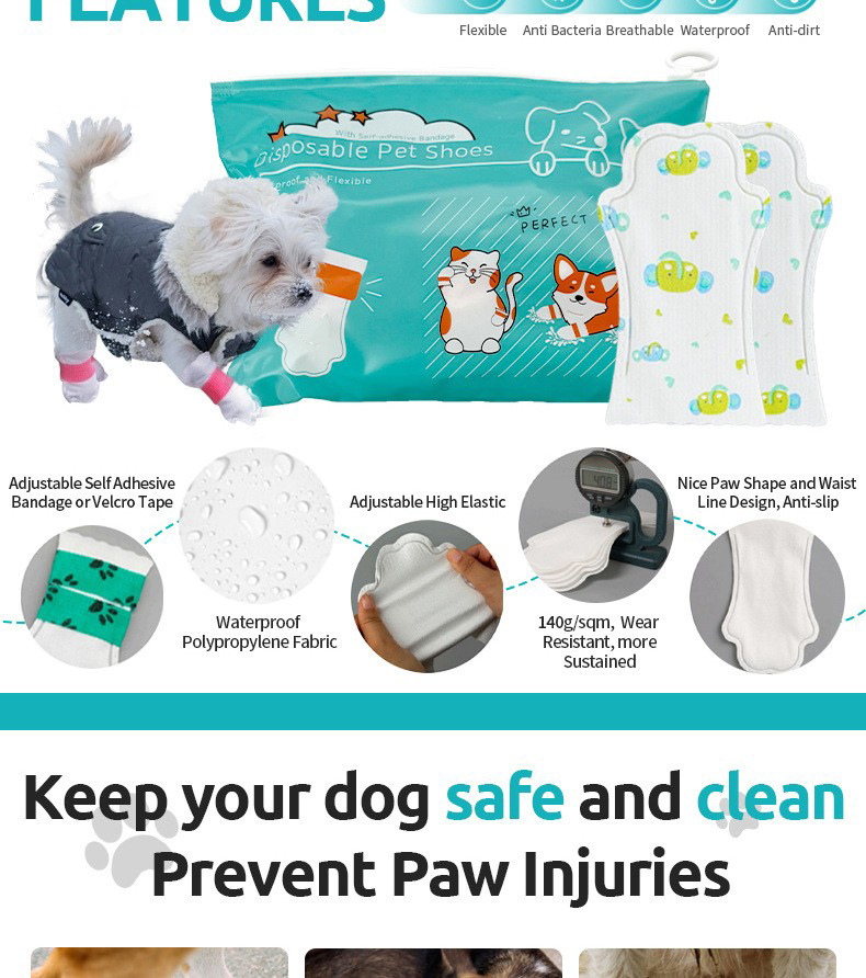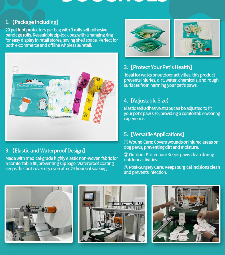 제조업체 애완 동물 신발 일회용 발 커버 개 신발 장식 방수 상처 보호 커버 개 산책을위한 더러운 방지 도구