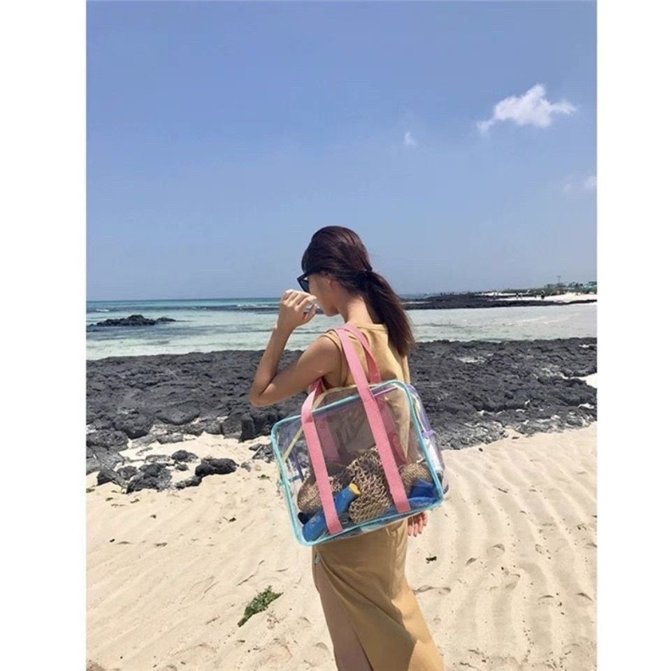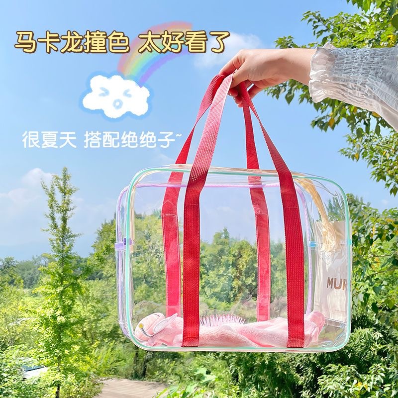 한국 마카롱 대용량 PVC 수영 투명 방수 비치 가방 보관 가방 워시 워킹 가방 핸드백